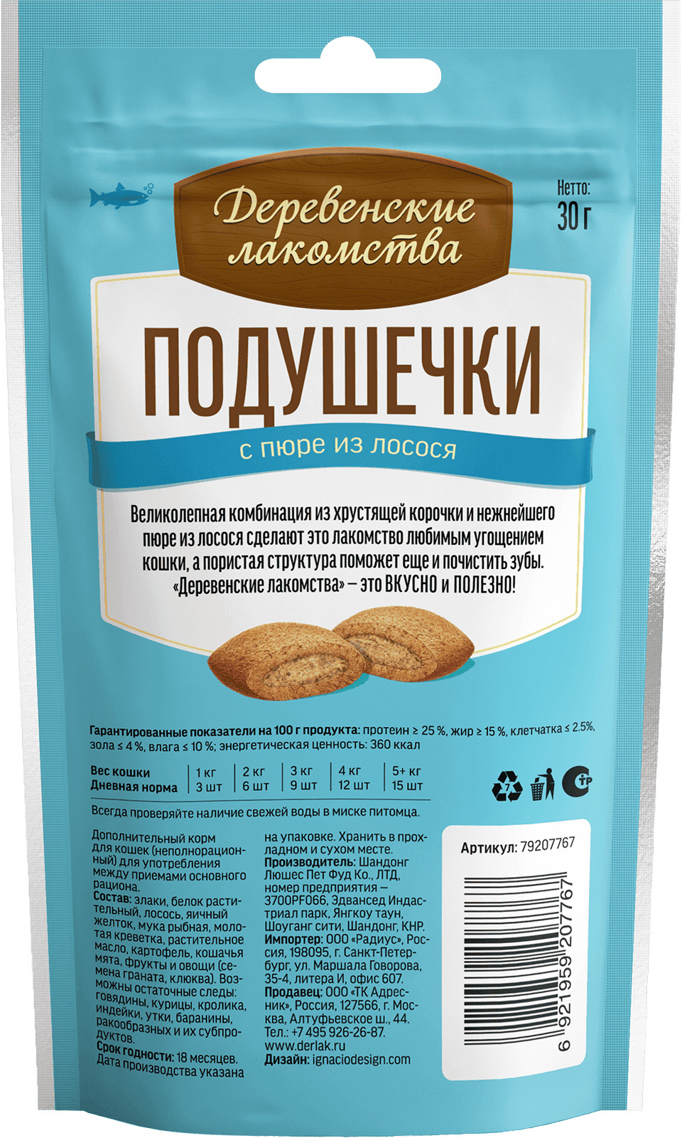 Великолепная комбинация из хрустящей корочки и нежнейшего натурального пюре из лосося делают это лакомство любимым угощением кошки, а пористая структура помогает питомцу чистить зубы.