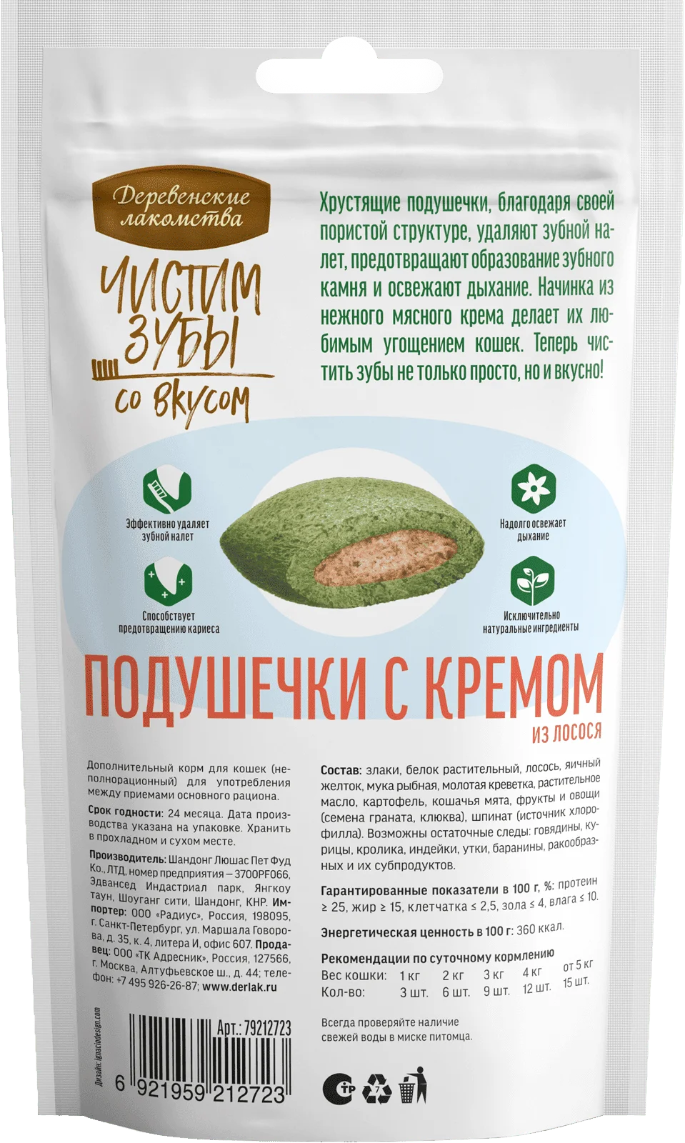 Хрустящие подушечки с кремом из лосося, благодаря своей пористой структуре, удаляют зубной налет, предотвращают образование зубного камня и освежают дыхание.