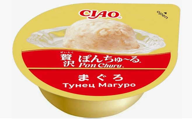 Привлекательное нежное суфле лакомство CIAO Pon Churu (ЧАО ПОН ЧУРУ) на основе тунца Магуро, в удобной порционной упаковке, создано, чтобы побаловать кошку.