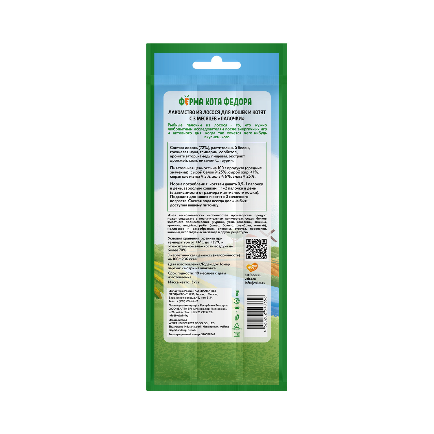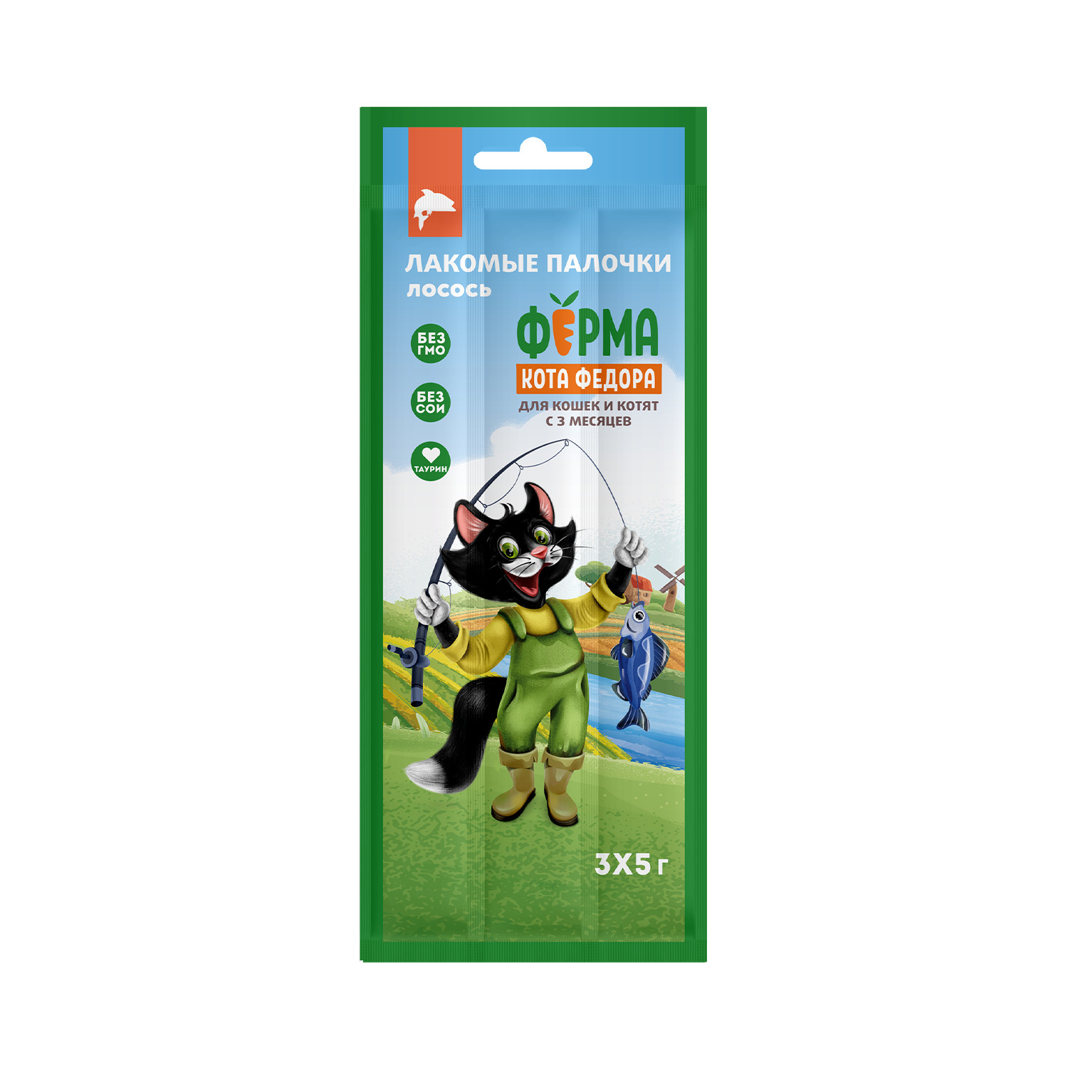 Лакомые палочки "Ферма кота Федора" из лосося - то, что нужно любопытным исследователям после энергичных игр и активного дня, когда так хочется чего-нибудь вкусненького!