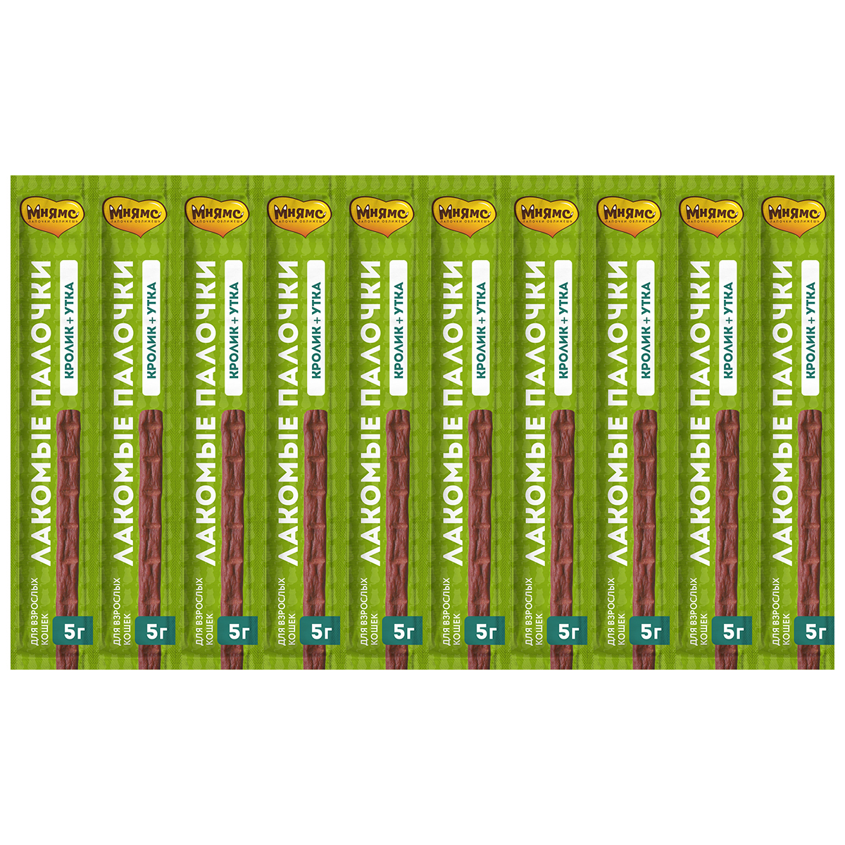Лакомые палочки с уткой и кроликом - вкусный путь к сердцу вашей кошки. Лакомые палочки можно давать из рук, ломать и использовать для дрессировки, наполнять ими интерактивные игрушки или подмешивать в корм для улучшения вкусовой привлекательности. В составе палочек более 90% мяса. А также в составе нет злаков, глютена и ароматизаторов. Докажите свою любовь вместе с вкусными и полезными лакомыми палочками "Мнямс".