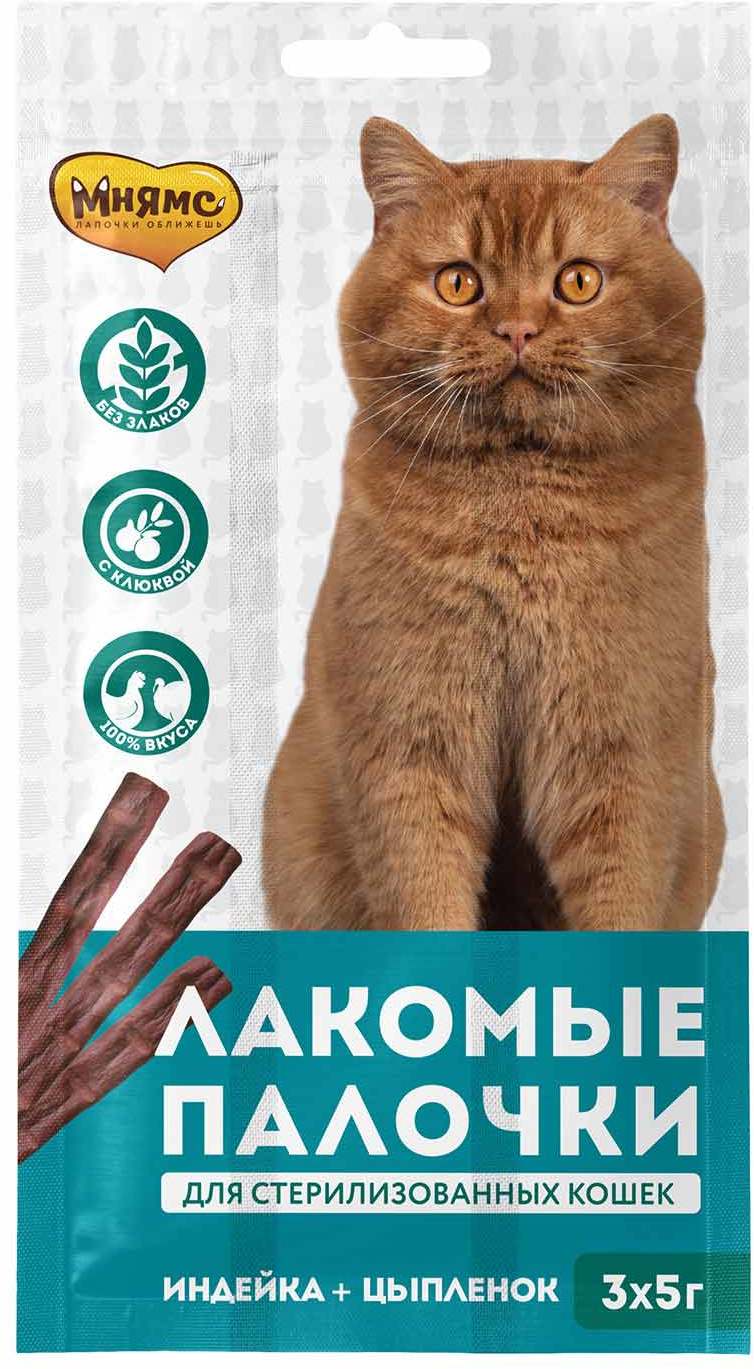 Лакомые палочки из индейки и цыпленка - вкусное угощение, созданное специально для стерилизованных кошек. Пониженная калорийность помогает контролировать вес, а клюква поддерживает здоровье мочевыводящей системы. Палочки можно давать питомцу из рук, ломать и использовать для дрессировки, наполнять или интерактивные игрушки для кошек или подмешивать их в корм для улучшения вкусовой привлекательности.