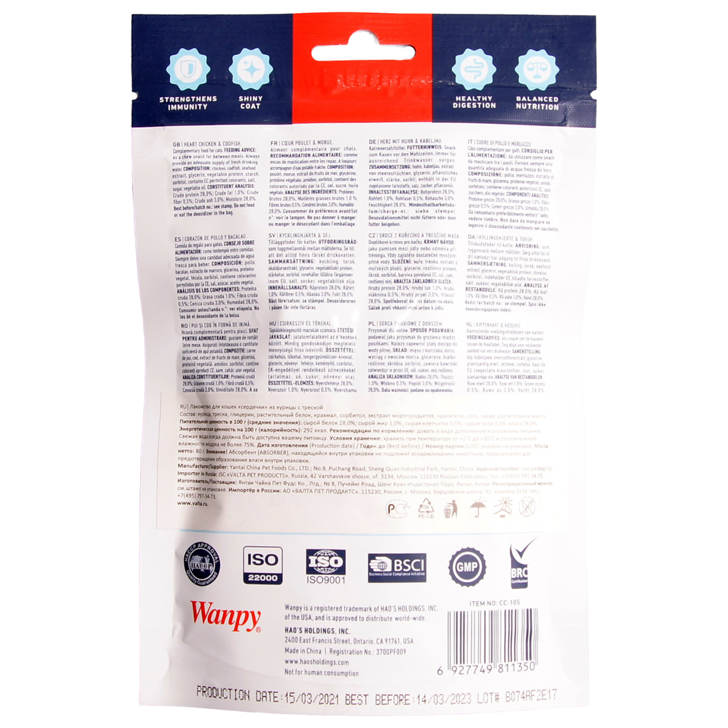 Wanpy Лакомство Cat «сердечки» из курицы с треской, для кошек, 80 г.