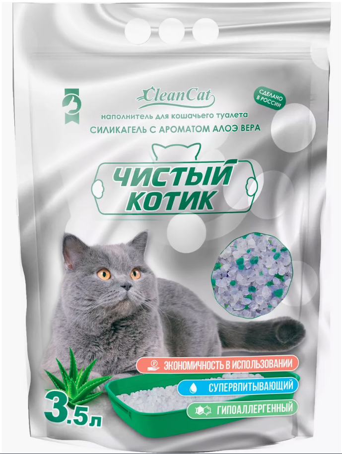 Силикагелевый наполнитель «Чистый котик» с ароматом АЛОЕ ВЕРА - отличается мгновенным и мощным влагопоглощением, а также высокой блокировкой запаха. В ходе специальной обработки производных кремния (натурального природного вещества) получается продукт с многопористой внутренней структурой и нулевой влажностью. В данном наполнителе из дробленого силикагеля используются только крупные частицы самого высокого качества, что положительно сказывается на безопасности Вашей кошки – не застревает в лапках, невозможно пораниться. Продукт экологически безвреден и безопасен при попадании в организм животного. Частицы силикагеля очень прочные, не размягчаются под воздействием влаги и работают в десятки раз дольше, чем обычный наполнитель. Он не пылит, не прилипает к шерсти и не разносится по дому, а легкий аромат алое вера, который активируется при соприкосновение с жидкостью, добавляет приятное ощущение свежести. Обладает бактерицидными свойствами и препятствует размножению болезнетворных бактерий и организмов.