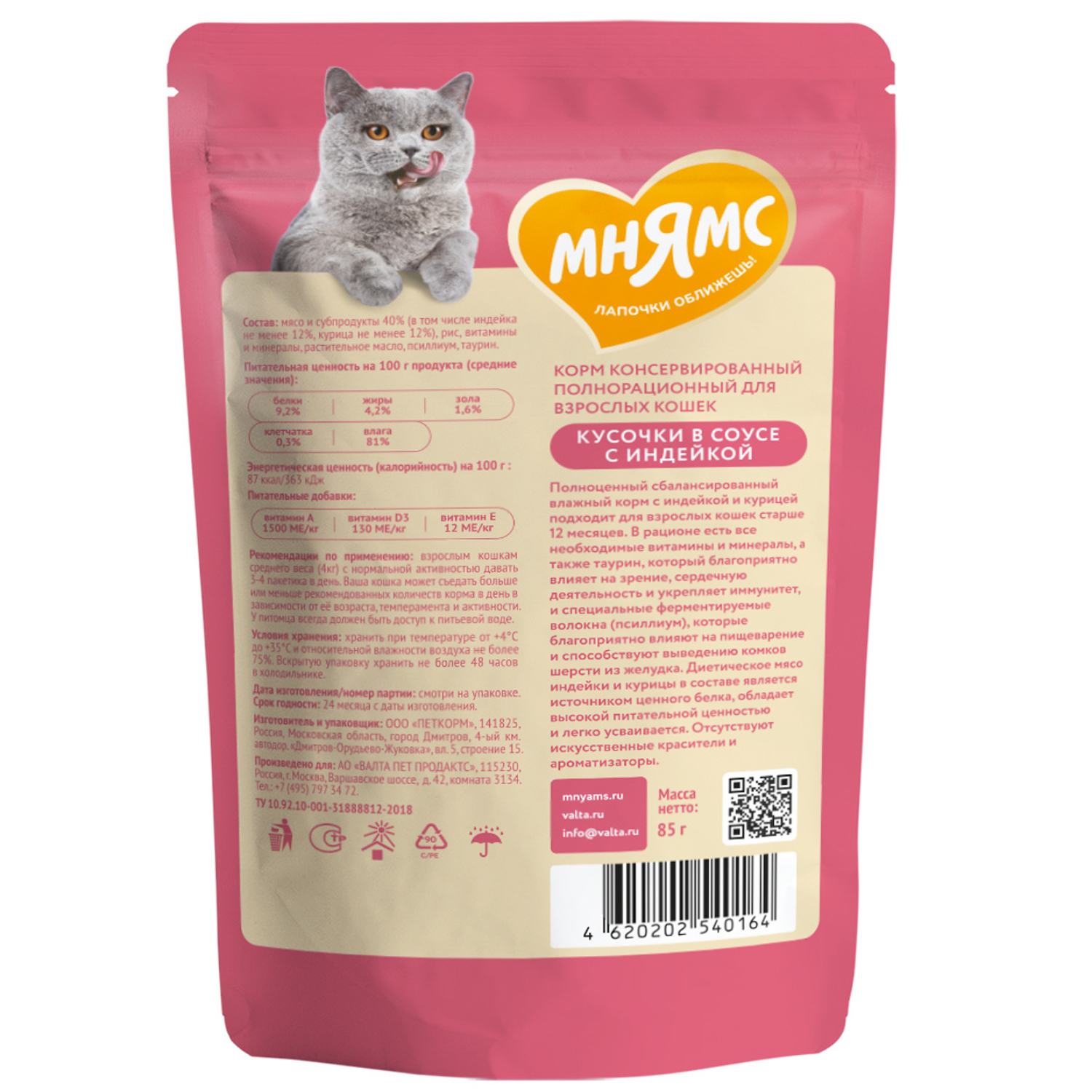 Высококачественный полнорационный сбалансированный влажный корм с индейкой для профилактики и вывода волосяных комочков шерсти из желудочно-кишечного тракта, подходит для взрослых кошек старше 12 месяцев.