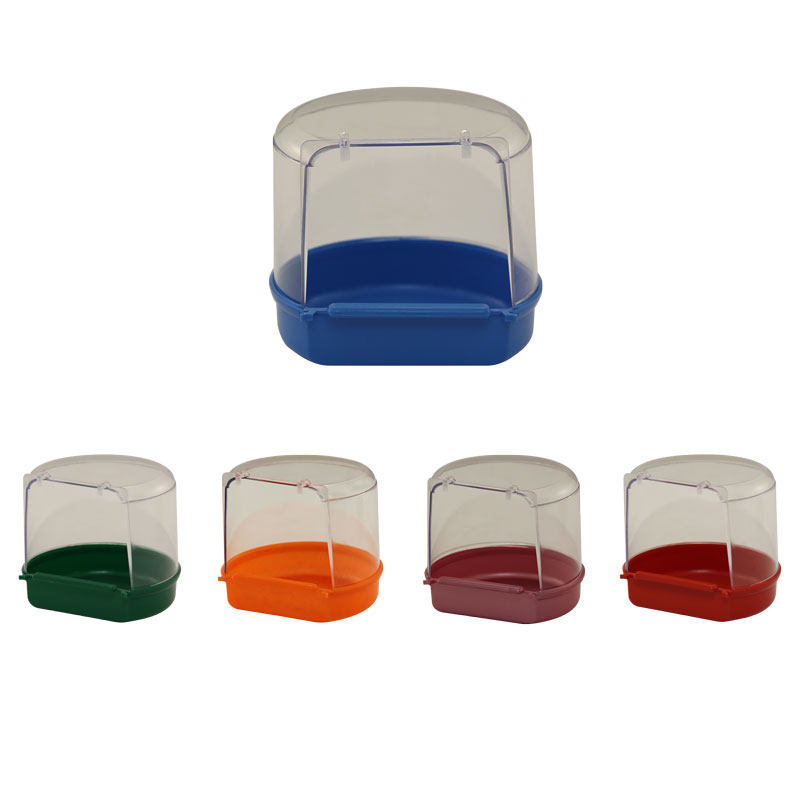 Идеально подходит для канареек, волнистых попугаев, экзотических птиц. Подвешивается крючками снаружи клетки, можно поставить внутрь. Прозрачный пластик с защитой от брызг воды. Просторный вход. Цвета в ассортименте.