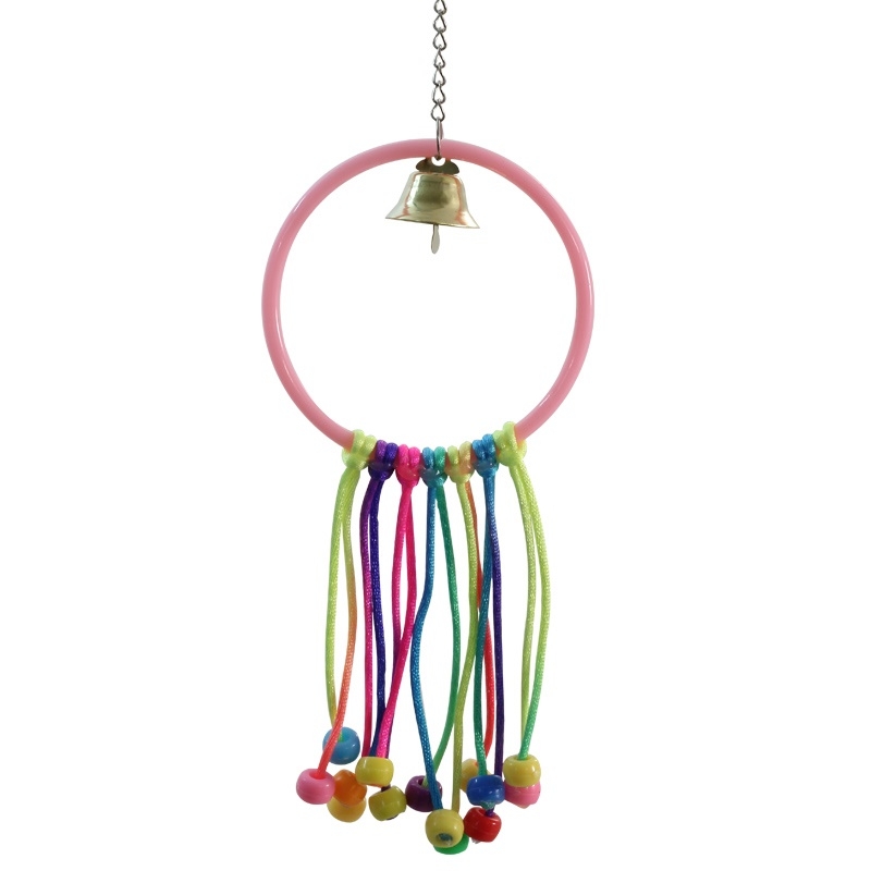Подвешиваемая за карабин игрушка для птиц в виде пластикового обруча с пластиковыми украшениями.Размеры: 24х8 см.Материал: пластик, металл.