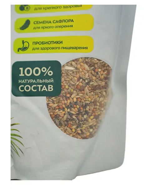 Ингредиенты: семя канареечное, просо желтое, просо красное, семена пайзы, овес голозерный, сорго, сафлор, ракушка кормовая, семена льна, рапс, витаминное печенье, юкка шидигера, комплекс пробиотиков, натуральный адсорбент - дрожжи (S.cerevisae).