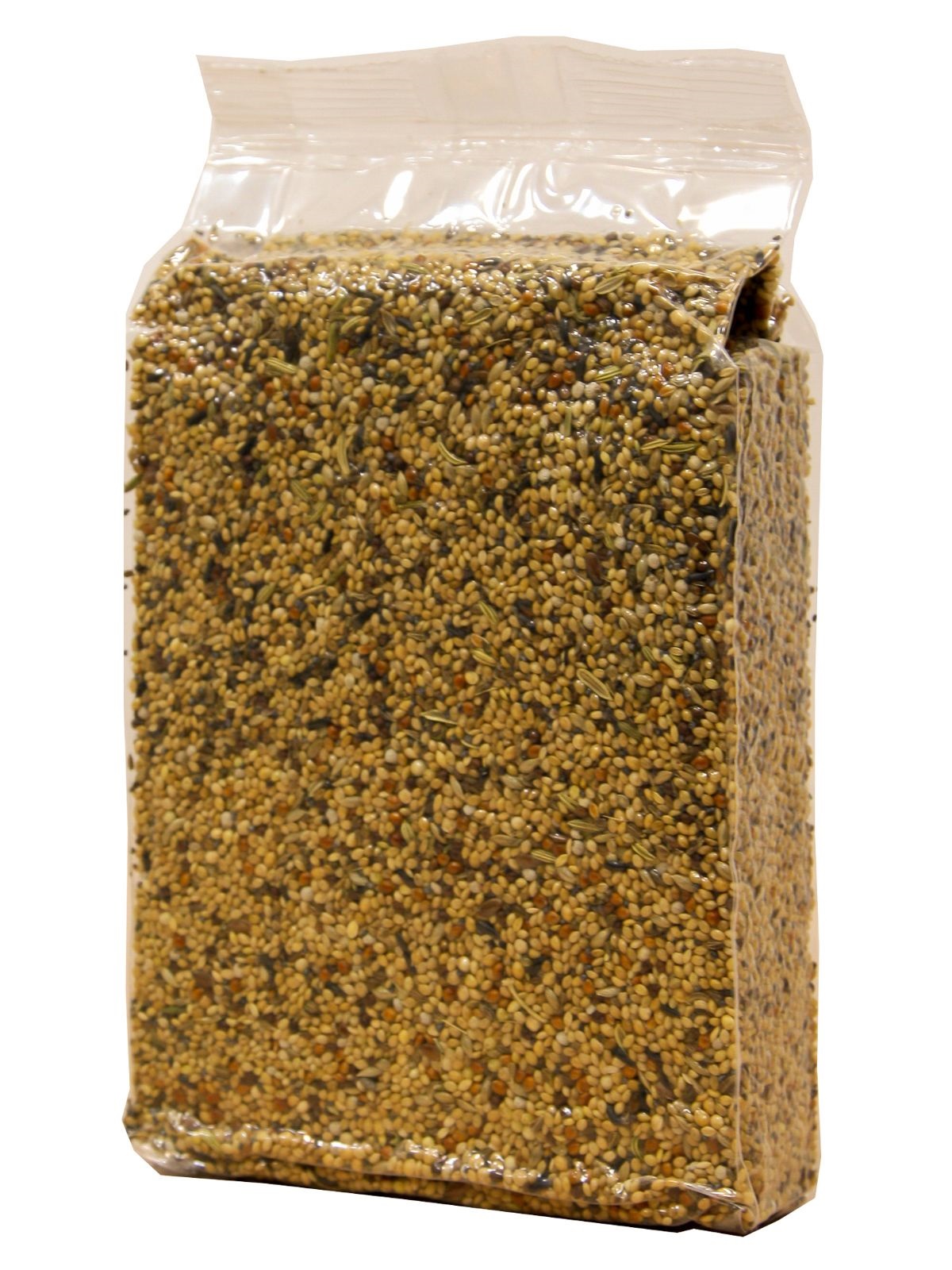 Ингредиенты: желтое просо, белое просо, овес лущеный, лен, просо, красное просо, двукисточник тростниковый, гранулы (пекарные продукты, субпродукты растительного происхождения, мед — 10 %, масла и жиры, натуральные ароматизаторы, минеральные вещества, красители и антиокислители: добавки, разрешенные в странах ЕС) — 4,1 %, шафлор.