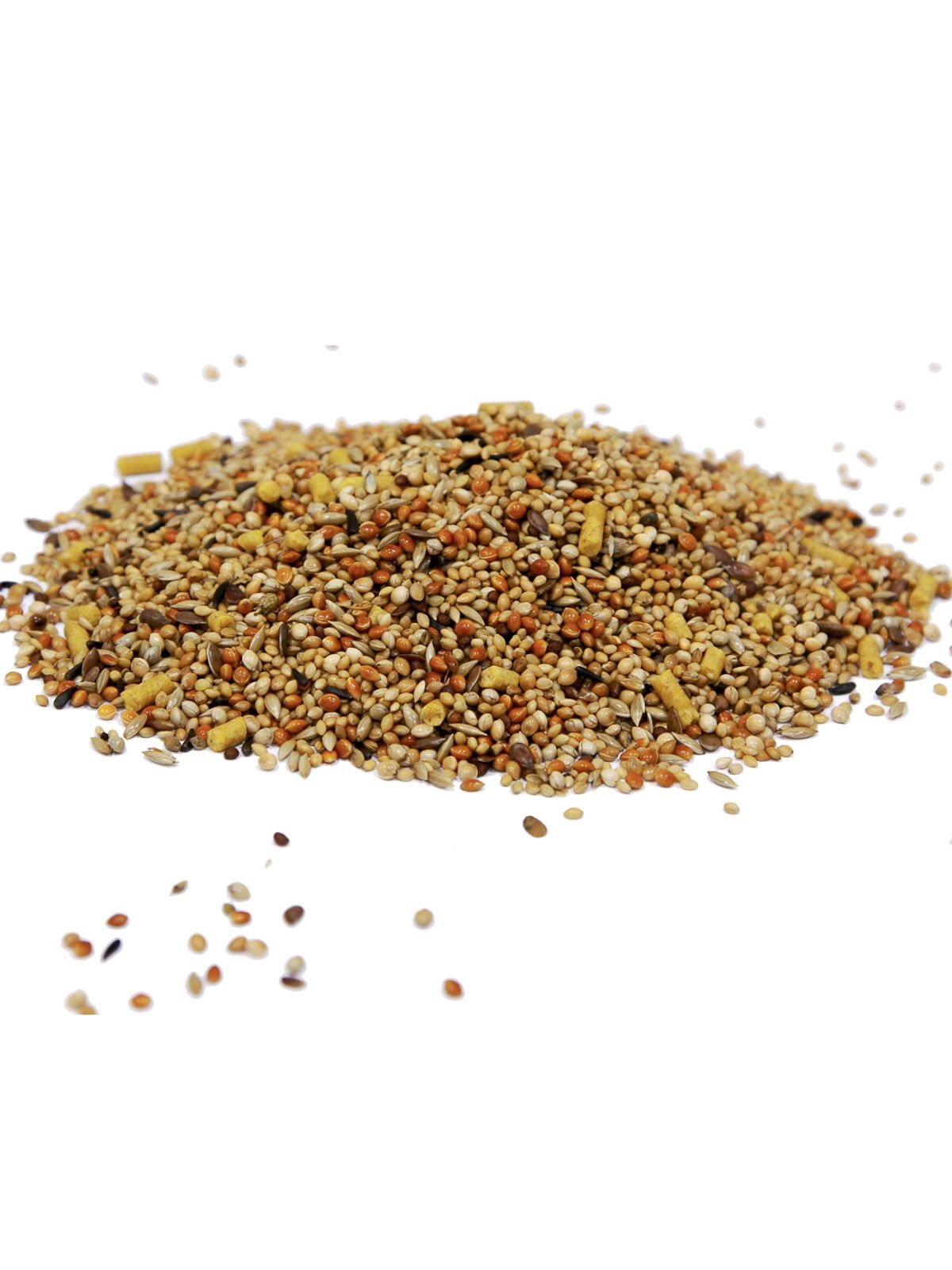 В состав корма включен уникальный элемент – зерна шафловера, обогащенные маслами, которые насыщают оперение птиц, а также помогает при запорах. Добавлены гранулы, обогащенные медом и фруктами, способствующие питательной ценности и корректному питательному балансу.