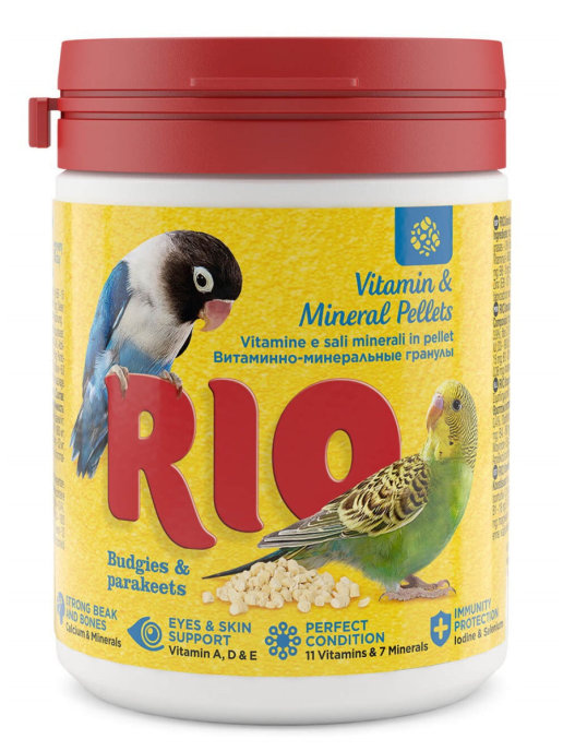 Птицы в домашних условиях часто испытывают недостаток витаминов и минеральных веществ. Например, витамин D3 вырабатывается в организме птиц только под действием ультрафиолета. Птицы, находящиеся в неволе, из-за недостатка солнечного света не могут синтезировать достаточное количество витамина D3 самостоятельно. Витаминно-минеральные гранулы RIO содержат комплекс важнейших витаминов, микро- и макроэлементов, необходимых для полноценного питания и здоровья домашних птиц. Ежедневное применение функционального корма исключает появление неблагоприятных последствий при несбалансированном питании. Он способствует укреплению иммунитета, улучшению зрения и состояния кожи и перьев.