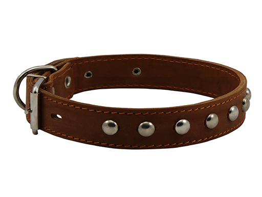 Ошейник из прочной выделанной двухслойной кожи с украшениями из металлических вставок. Используется на прогулке, во время работы либо при привязном содержании собаки. Ошейник надевают так, чтобы он не душил собаку и не мог соскользнуть через голову при её резком рывке назад. Проверить это следует ещё до выхода из дома.