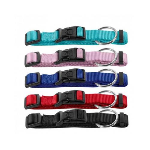 Этот ошейник предназначен для собак мелких и средних пород и имеет следующие размеры: обхват шеи – 22-35 см, ширина – 10 мм. Изделие смотрится очень стильно – ошейник сделан из нейлона красного цвета, прочного материала для каждодневного использования. В оформлении ошейника задействована хромированная фурнитура хорошего качества. Кроме того, у этой модели ошейника имеется удобная пластиковая застежка и пластиковый бегунок, который позволяет легко и быстро подогнать изделие по размеру и зафиксировать его на шее собаки.