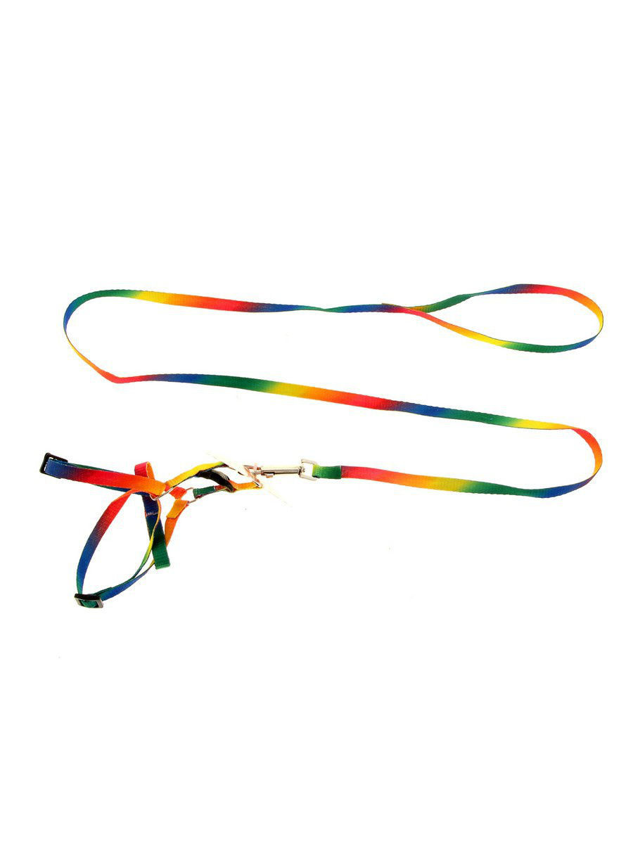 Комплект "Радуга", капрон, поводок 120 х 1 см, шлейка 24-34 х 1 см. Шлейка устраняет нагрузку с шейных позвонков животного, распределяя ее на плечевой и грудной отделы.