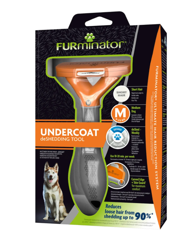 Отлично подойдет для средних собак (9-23 кг) с короткой шерстью (менее 5 см). Уникальное лезвие захватывает и вытаскивает мертвые волоски подшерстка до их выпадения, сокращая линьку до 90%. Инструмент экономит ваше время, сохраняет здоровье кожи и шерсти, не повреждает остевой волос. Вы забудете о выпавшей шерсти на полу, одежде и мебели.