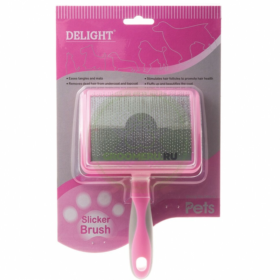 Пуходерка имеет частую металлическую щетину с каплями, удаляет старую шерсть из шерсти и подшерстка, стимулирует волосяные луковицы, придает шерсти здоровый, пушистый вид. Избавляет от колтунов и спутывания. Мягкий корд. Расчесывайте волосы в направлении роста волос. Если наткнулись на колтун, не дергайте, осторожно и медленно проводите пуходеркой. Это позволит избежать выдергивание шерсти. Эргономичная ручка с упором под большой палец. Пуходёрки DeLIGHT прекрасно удаляют старую шерсть и вычёсывают подшёрсток, разделяют все шерстинки и вытягивают шерсть на полную длину. Закруглённые кончики щетинок в виде капли мягко и бережно воздействуют на кожу животного, создают дополнительный массажный эффект.