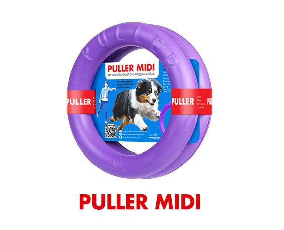 ПУЛЛЕР Миди подходит собакам средних и крупных пород, а также как промежуточный размер для тренировки щенков крупных пород. Уникальность размера ПУЛЛЕР Миди в том, что благодаря достаточно крупной толщине кольца и сравнительно небольшому диаметру он может эффективно использоваться для тренировки собак разных пород, размеров и возраста. Это подтверждено многократным тестированием во время различных видов тренировок.