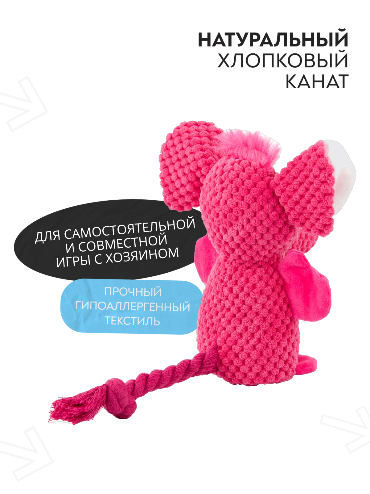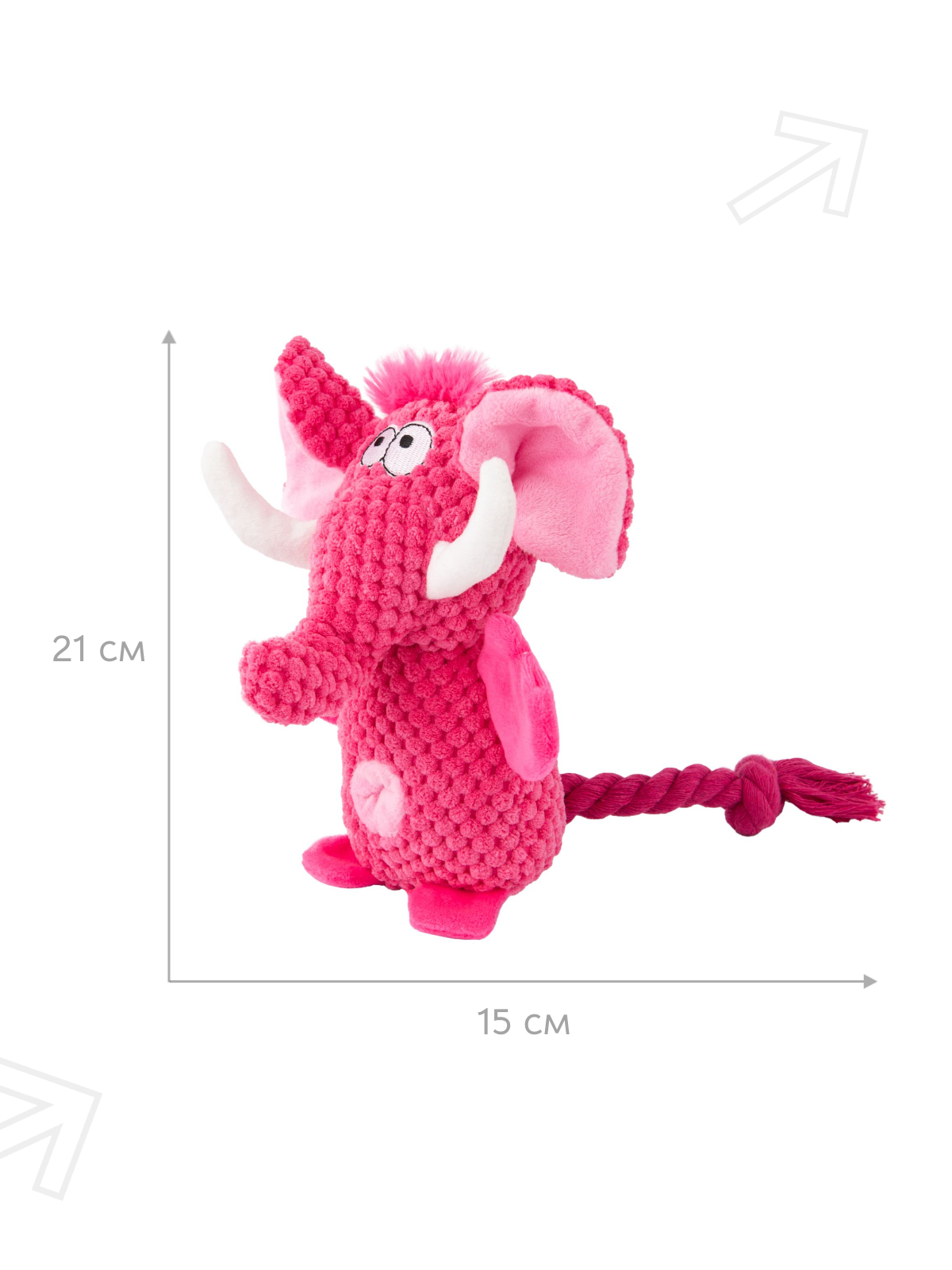 Игрушка Mr.Kranch для собак Слон плюшевая с пищалкой, шуршащими элементами, канатиком и отверстием под лакомство.