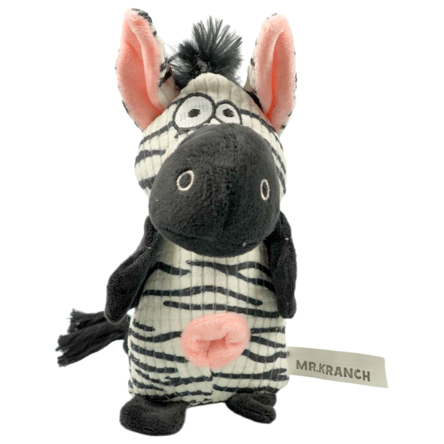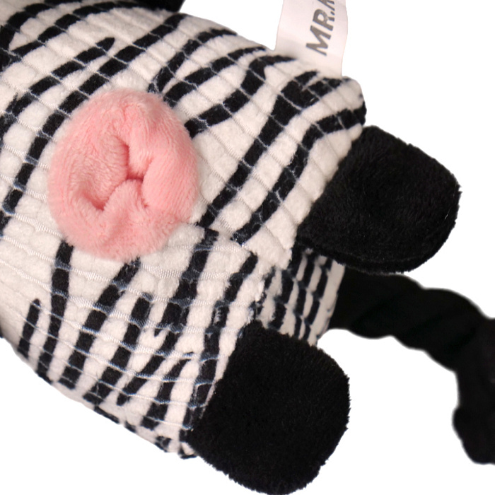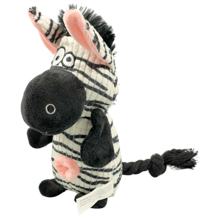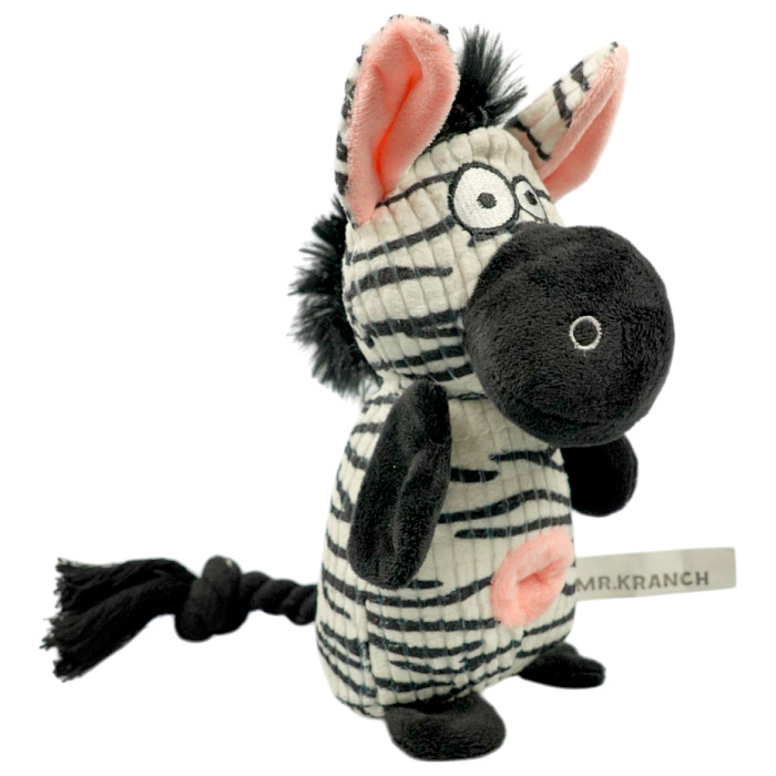 Игрушка Mr.Kranch для собак Зебра плюшевая с канатиками, пищалкой и отверстием под лакомство. Уникальное сочетание высокопрочных гипоаллергенных материалов и стильного дизайна. Для привлечения большего интереса питомца, спрячьте любимые лакомства или корм в отверстие в игрушке. Игрушка предназначена для совместных игр с хозяином как в помещении, так и на улице. Натуральный хлопковый канат способствует удалению мягкого зубного налета. Размер: 21 см