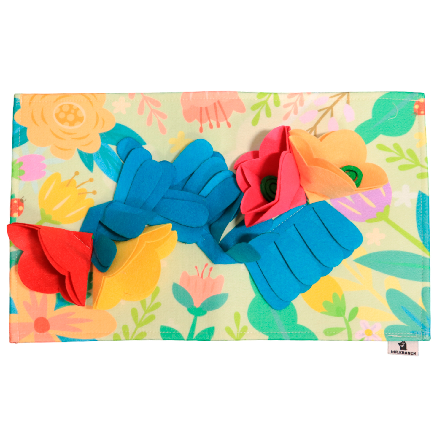 Многофункциональная игрушка для собак нюхательный коврик «Цветочный луг». Нюхательный коврик - это уникальная развивающая игрушка, которая содержит комплекс упражнений различной сложности для развития интеллекта собаки. Выполняя упражнения, собака не просто вынюхивает любимый корм или лакомство, но и думает, как заполучить желаемую награду, что стимулирует развитие интеллектуальной деятельности. Способствует решению проблем с ЖКТ, а также выполняет функции анти-стресс игрушки. Произведено с использованием гипоаллергенных материалов. Уход: ручная стирка при температуре 40°С.