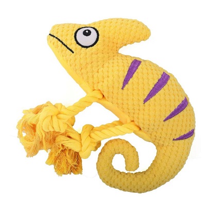 —Mr.Kranch Игрушка для собак "Хамелеон" плюшевая с канатиками и пищалкой 26 см желтая