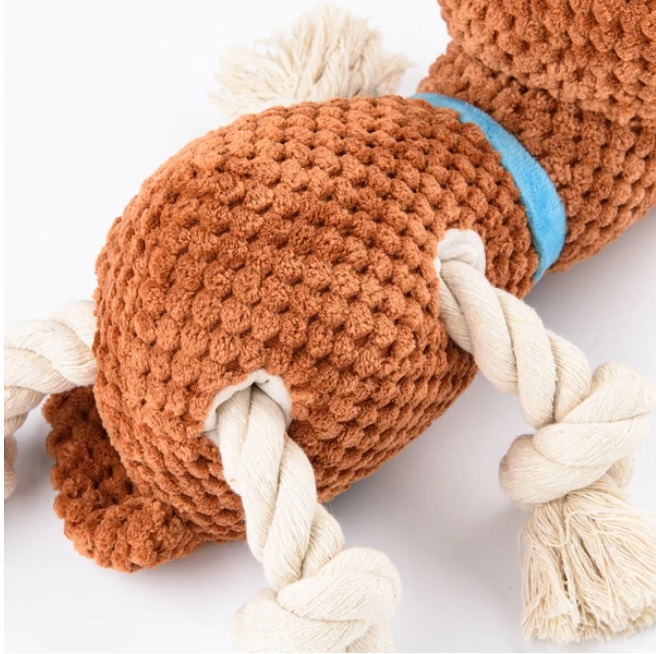 Игрушка Mr.Kranch для собак "Собачка" плюшевая с канатиками и пищалкой. Уникальное сочетание высокопрочных гипоаллергенных материалов и стильного дизайна. Для привлечения большего интереса питомца, в переплетение каната можно спрятать любимые лакомства или корм. Игрушка предназначена для совместных игр с хозяином как в помещении, так и на улице. Натуральный хлопковый канат способствует удалению мягкого зубного налета. Размер: 22 см