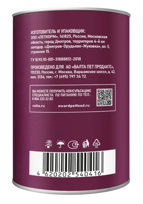 Состав: Мясо и мясные субпродукты 45% (говядина не менее 12%), рубец 4%, рис не более 2,7%, витамины и минералы, льняное масло 0,5%, экстракт эхинацеи.