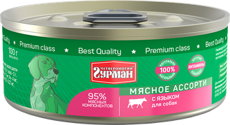 Четвероногий гурман “Мясное ассорти” для собак – это влажный корм премиум класса с фаршевой консистенцией. В его составе 95% мясных компонентов исключительно высшего качества. Рецептуры корма богаты ингредиентами – мясо и всевозможные субпродукты обеспечивают лакомый вкус, притягательный аромат, высокую питательность, а также насыщенный комплекс витаминов и минералов. Корм полностью натуральный – в его составе нет искусственных красителей, ароматизаторов, усилителей вкуса и ГМО.“Мясное ассорти” подходит для собак всех пород для ежедневного кормления или как дополнение к основному рациону. При этом рекомендуется смешивать консервы с “Моментальными кашами” Четвероногий гурман.Состав: язык, сердце, рубец, легкое, печень, вода, масло подсолнечное, желирующая добавка, клетчатка, соль.Пищевая ценность (в 100 г продукта): протеин – 10,5 г, жир – 6,3 г, клетчатка – 0,5 г, зола – 2 г, влага – 82 г.Минеральные вещества (в 100 г продукта): P – 107 мг, Ca – 11 мг, Na – 160 мг, Cl – 213 мг, K – 172 мг, Mg – 11 мг, Fe – 4