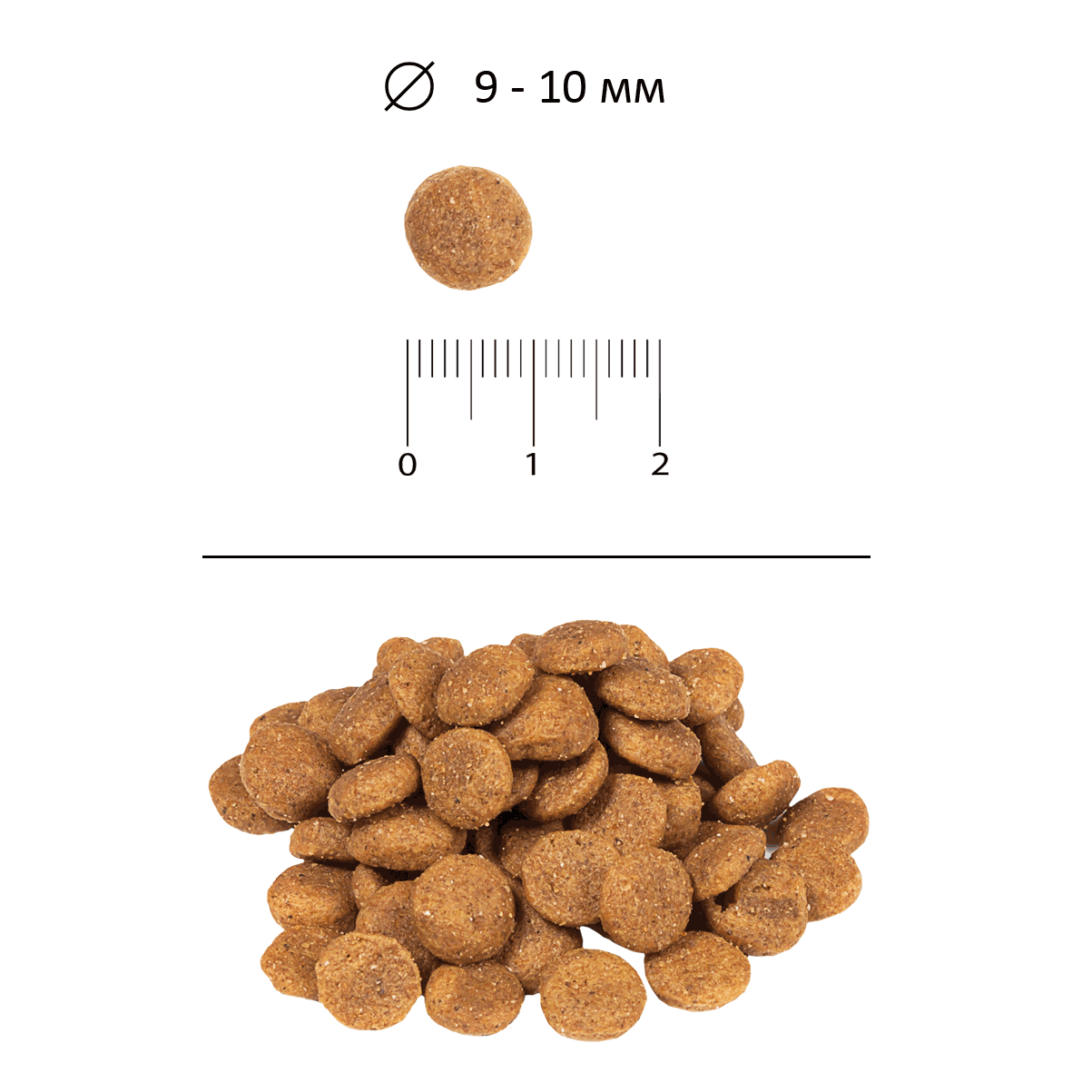 Состав: дегидрированное мясо курицы (32%), цельная кукуруза, цельный рис, куриный жир, гидролизованная печень курицы, витаминно-минеральный премикс (витамины: A, D3, E, холин хлорид, бетаин, B3, B5, B2, B1, B6, фолиевая кислота, B12, калий, цинк, железо, марганец, медь, йод, селен), свекольная пульпа, рыбий жир, кукурузные рыльца, дегидратированное яйцо, дрожжи - источник маннаноолигосахаридов (MOS), D,L-метионин, L-лизин, пробиотик - живые микроорганизмы Bacillus subtilis и Bacillus licheniformis, экстракты юкки Шидигера, фенхеля и розмарина, фукус, антиоксидант.