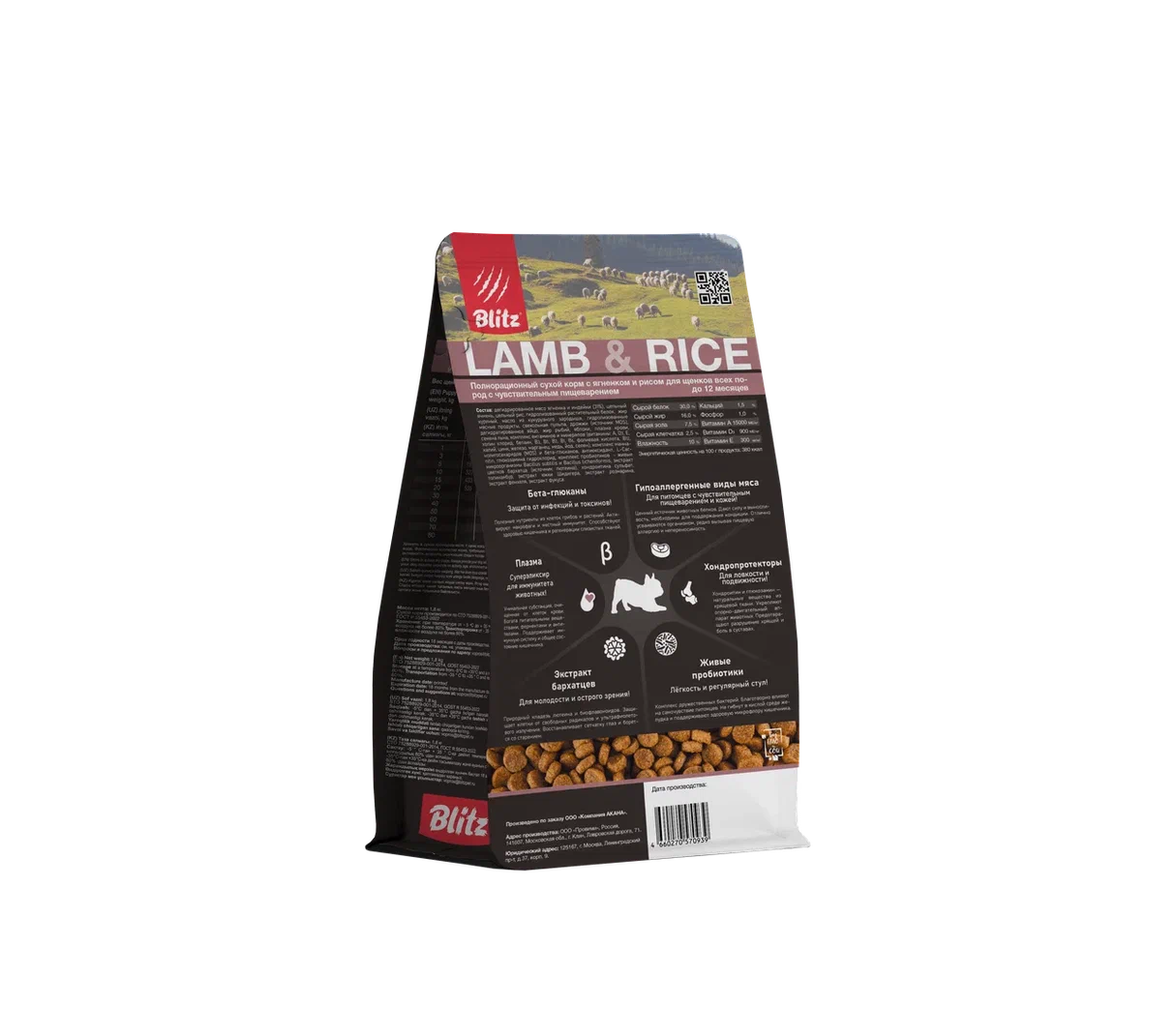 Blitz Puppy Lamb & Rice All Breeds удовлетворяет все жизненные потребности щенка, обеспечивая его здоровое развитие. Кроме этого, рацион рекомендован беременным и кормящим сукам с особыми диетическими потребностями.