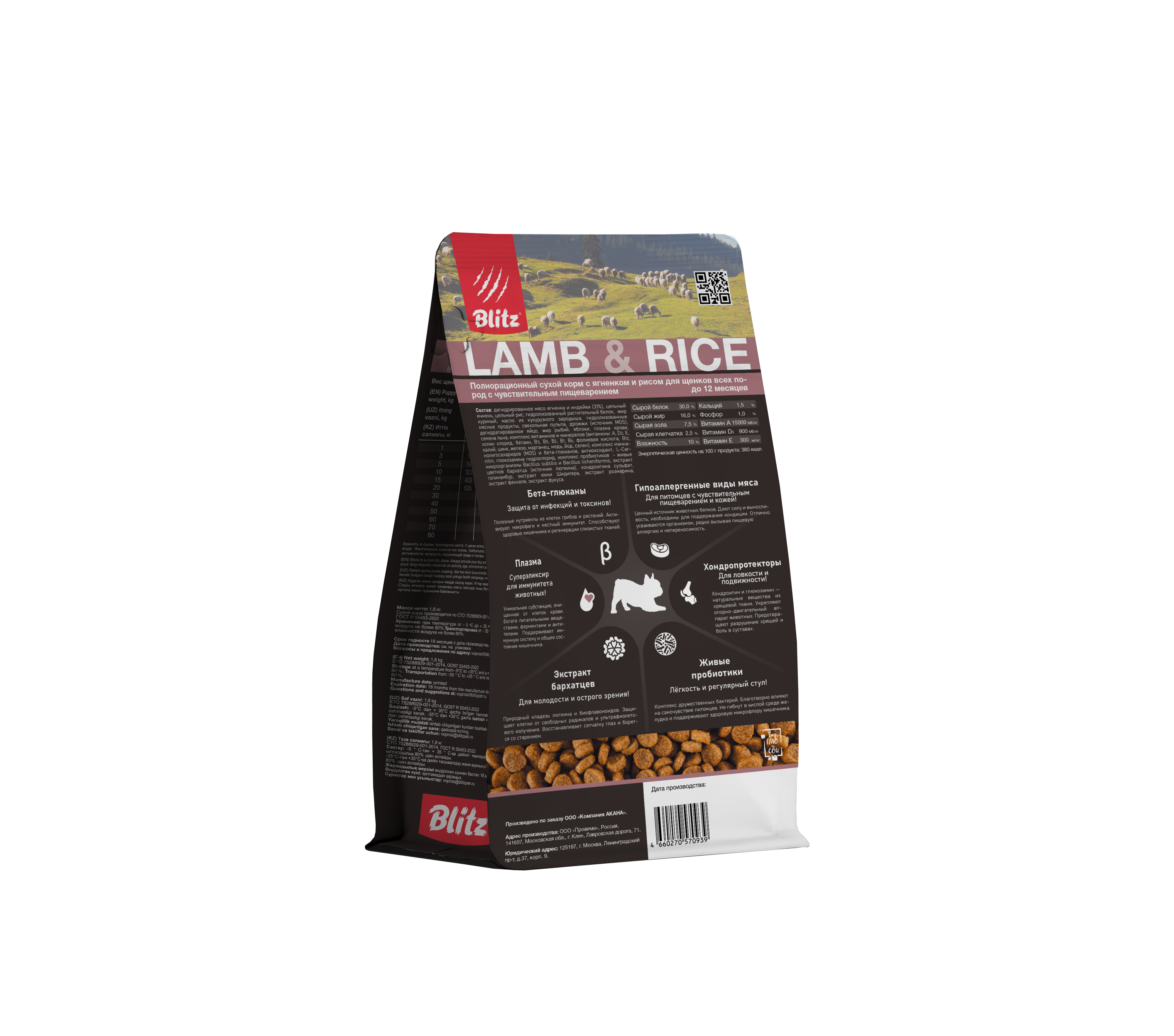 Blitz Puppy Lamb & Rice All Breeds удовлетворяет все жизненные потребности щенка, обеспечивая его здоровое развитие. Кроме этого, рацион рекомендован беременным и кормящим сукам с особыми диетическими потребностями.