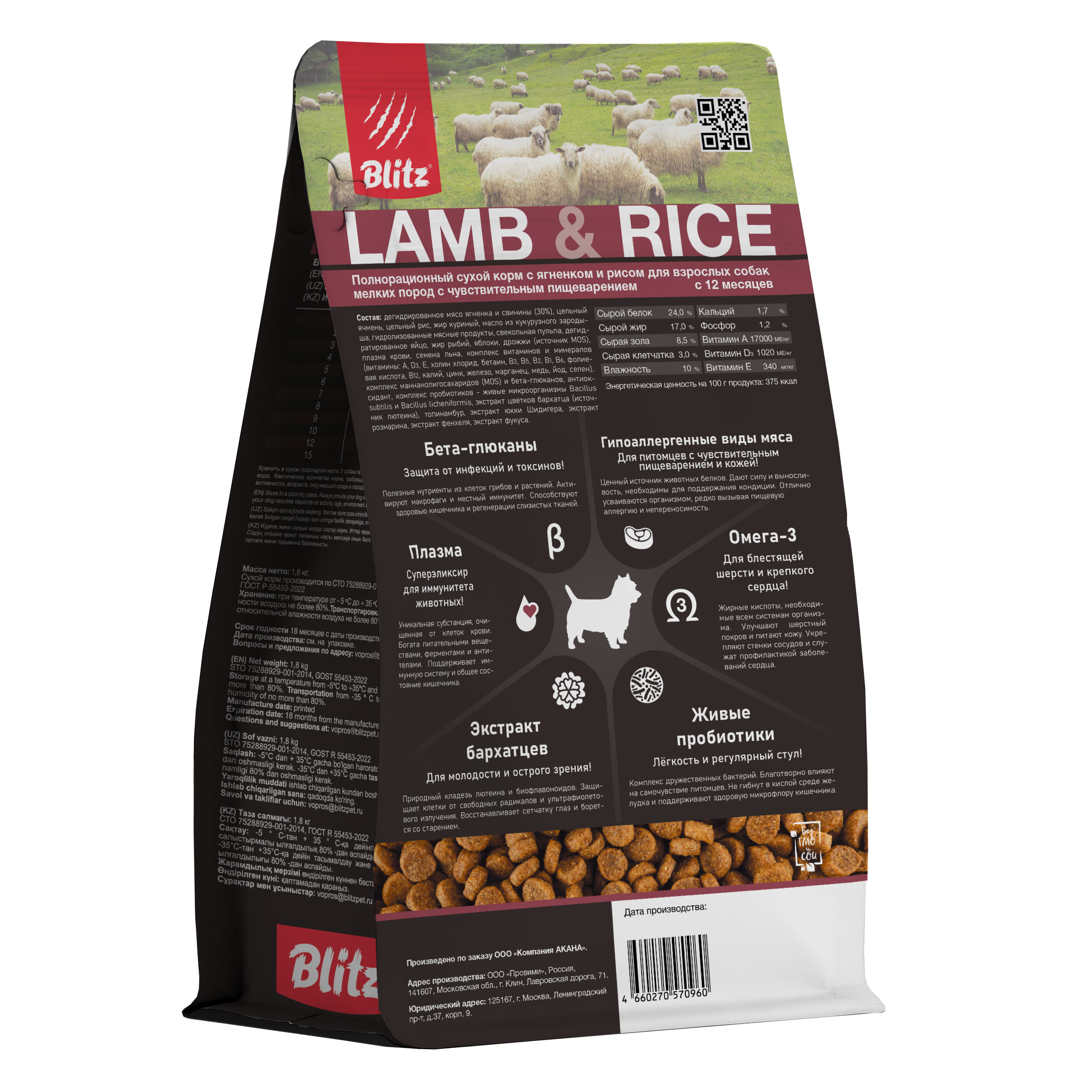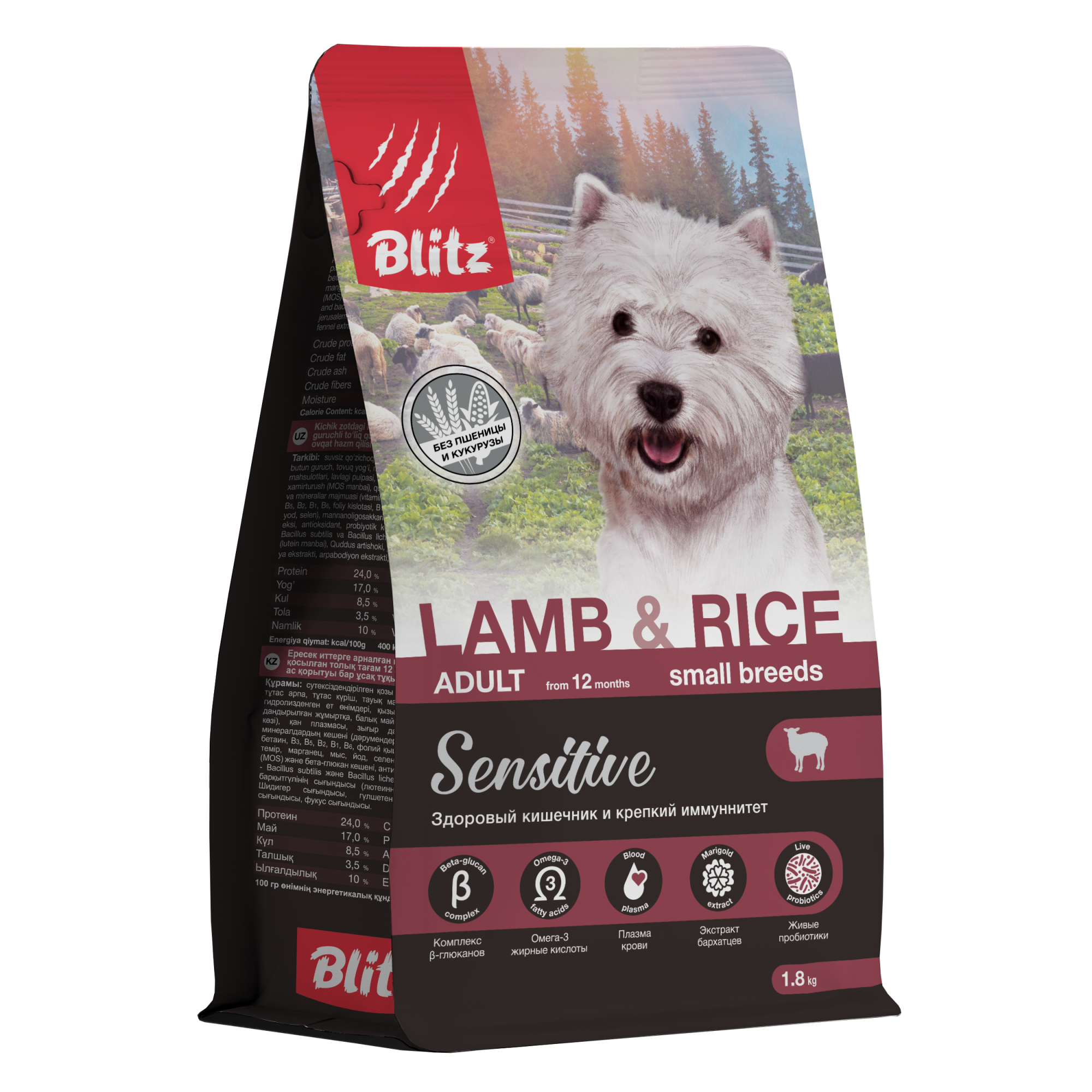 Комплексный сбалансированный сухой корм суперпремиум-класса Blitz Lamb & Rice Small Breeds Adult специально создан для взрослых собак мелких пород с чувствительным пищеварением.