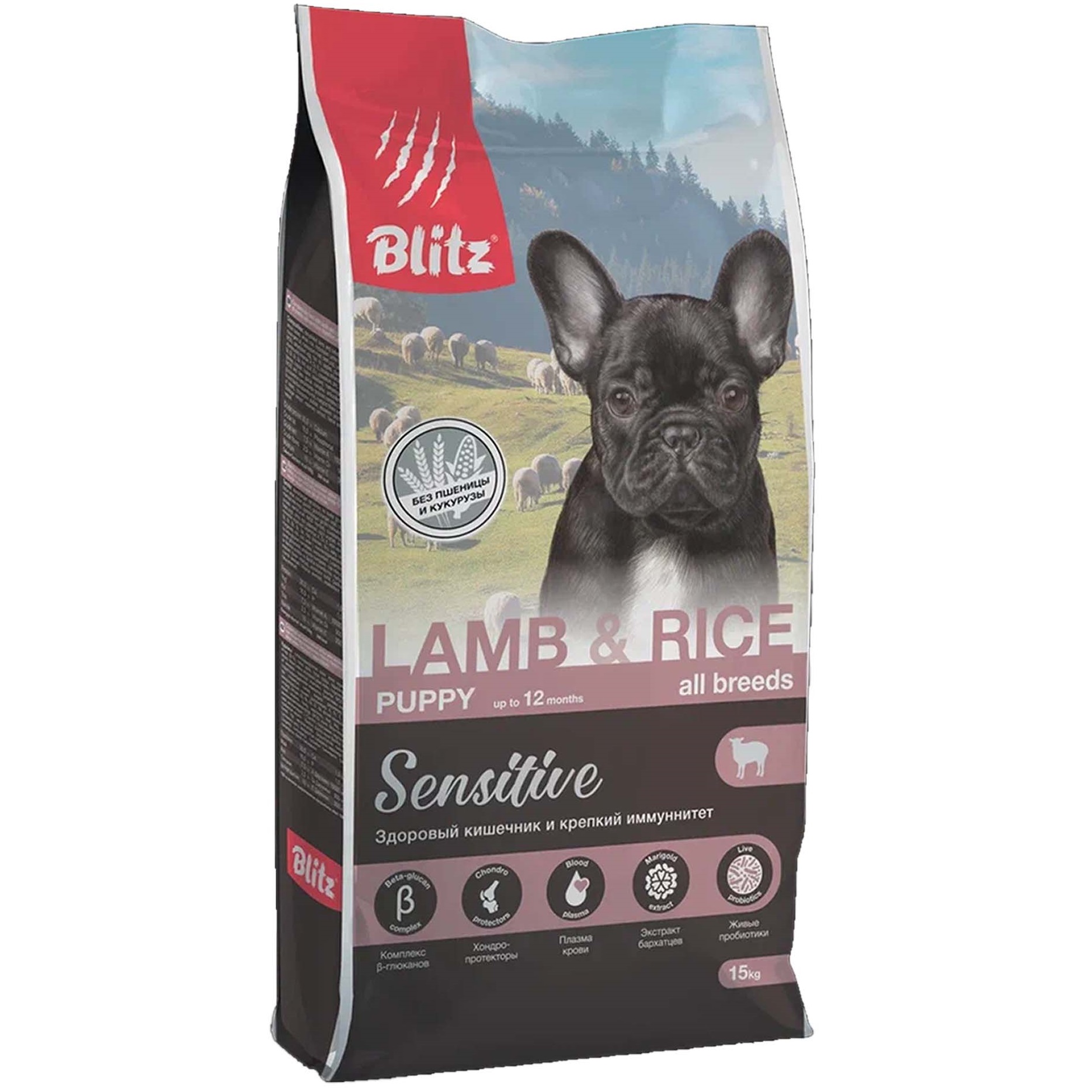 Комплексный сбалансированный сухой корм "Блиц" суперпремиум-класса с ягнёнком и рисом подходит для щенков всех пород с чувствительным пищеварением, пищевой непереносимостью или пищевыми аллергиями.