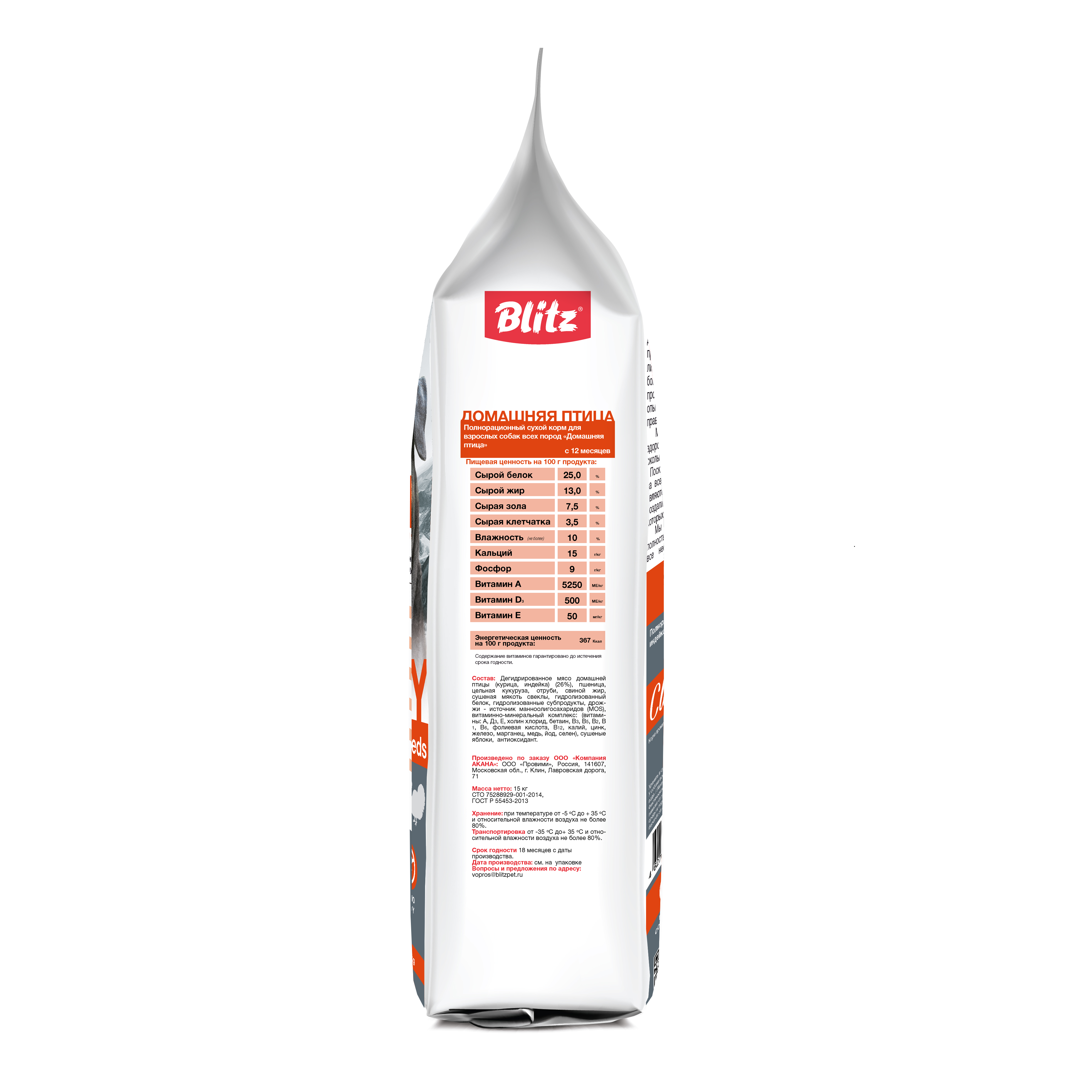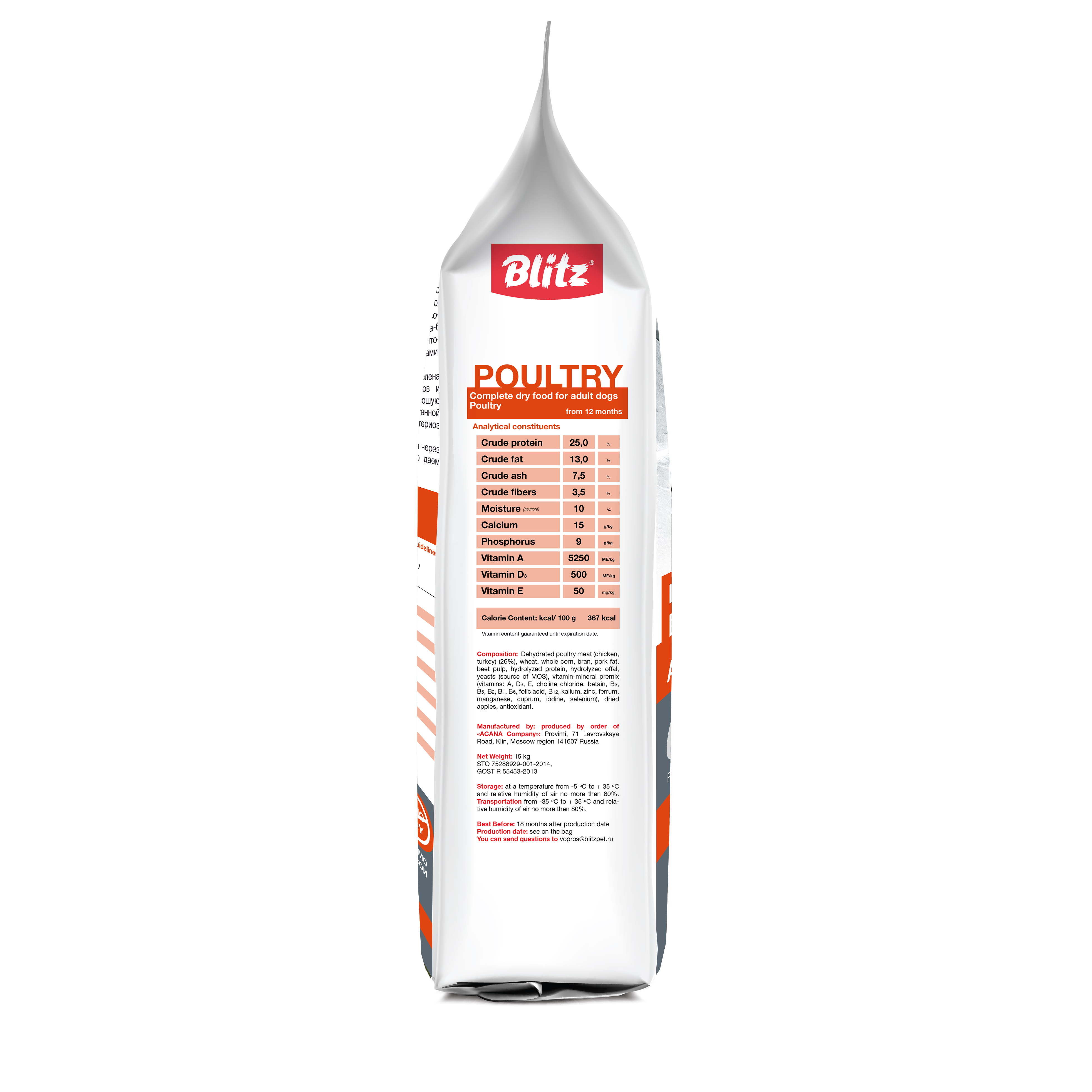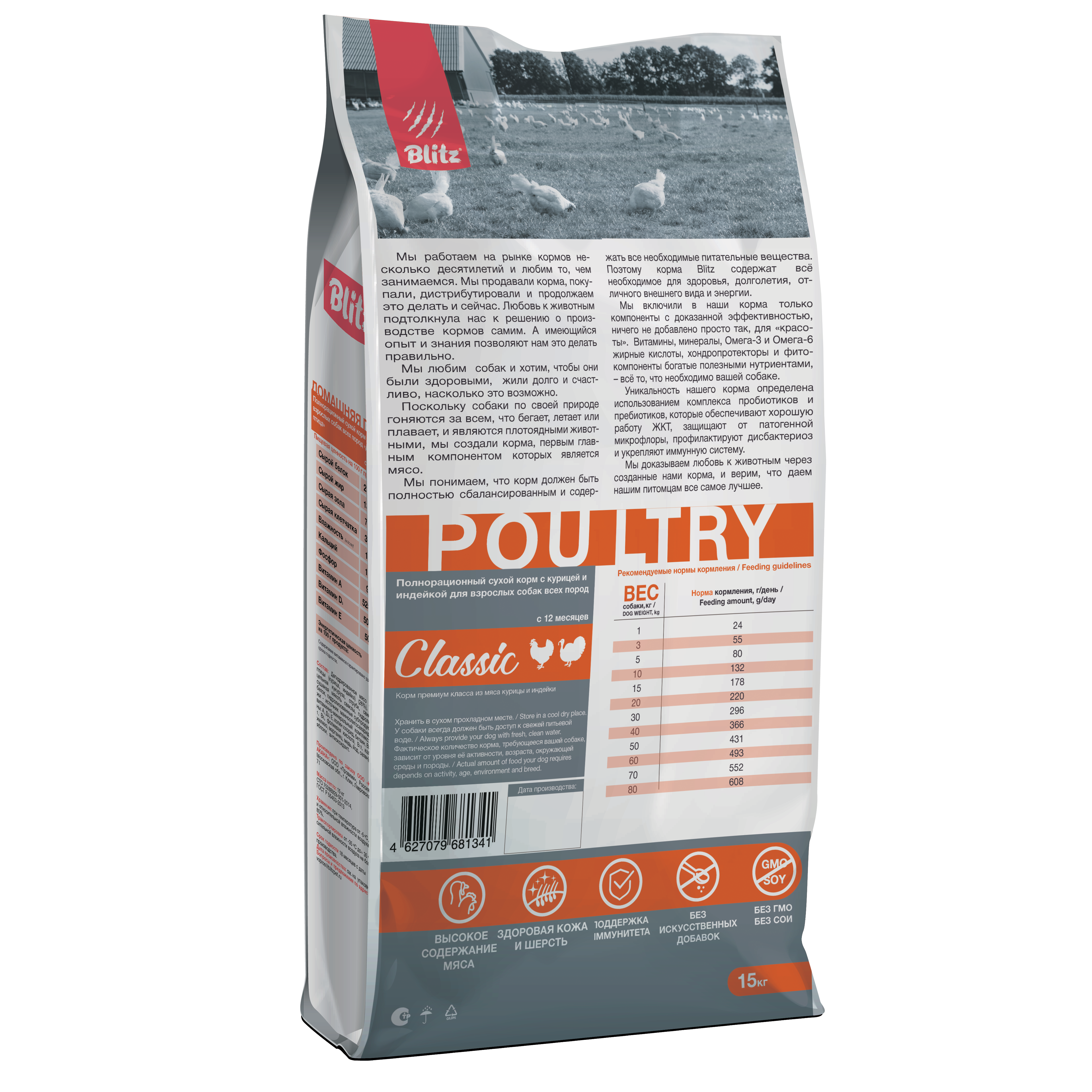 Корм Blitz Classic Poultry — для тех, кто хочет кормить свою собаку сбалансированным премиальным рационом и заинтересован в разумной стоимости корма!