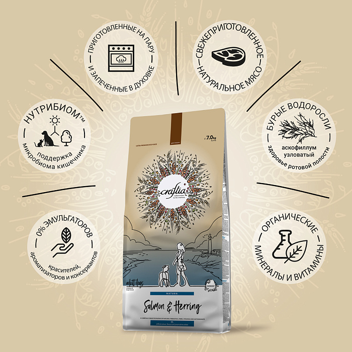 CRAFTIA NATURA — корм для собак ультрапремиум класса, созданный с любовью к природе.