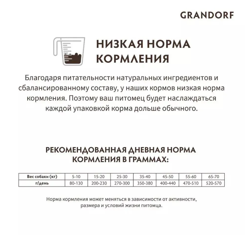 - 65% мяса в составе корма
