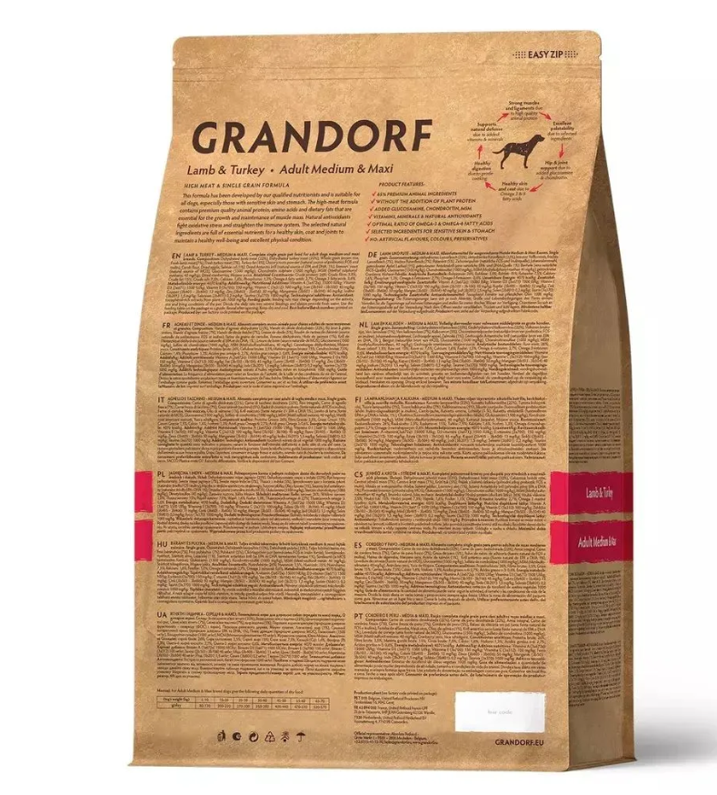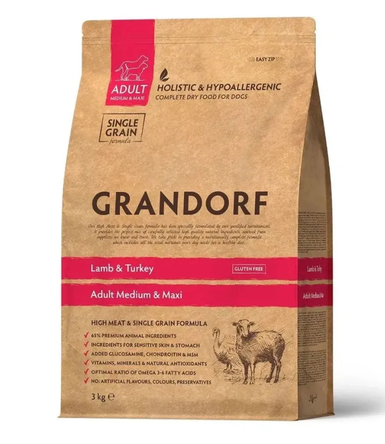 Свежее гипоаллергенное и питательное мясо ягненка и постной индейки благотворно влияют на пищеварительную систему собаки. Благодаря гипоаллергенным ингредиентам, одному виду зерновых, отсутствию глютена, корм имеет отличную усвояемость, высокую пищевую ценность и помогает оставаться вашему питомцу здоровым и жизнерадостным на протяжении долгих лет жизни.