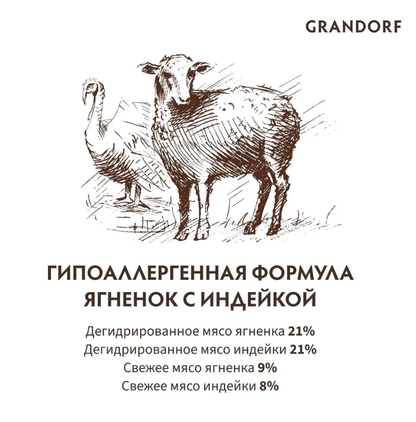 Состав: Дегидрированное мясо ягненка (21%), Дегидрированное мясо индейки (21%), Цельнозерновой коричневый рис, Свежее мясо ягненка (9%), Свежее мясо индейки (8%), Жир индейки (4%), Порошок корней цикория (натуральный источник пребиотиков: FOS и инулин), Мука из плода рожкового дерева, Сушеное яблоко, Свежее масло лосося (1%), Сушеный антарктический криль (натуральный источник ЭПК и ДГК, 1%), Пивные дрожжи (природный источник MOS и бета-глюканов), Глюкозамин (1500 мг/кг), Хондроитина сульфат (1000 мг/кг), MSM (метилсульфонилметан, 40 мг/кг), Сушеная клюква, юкка Мохаве.