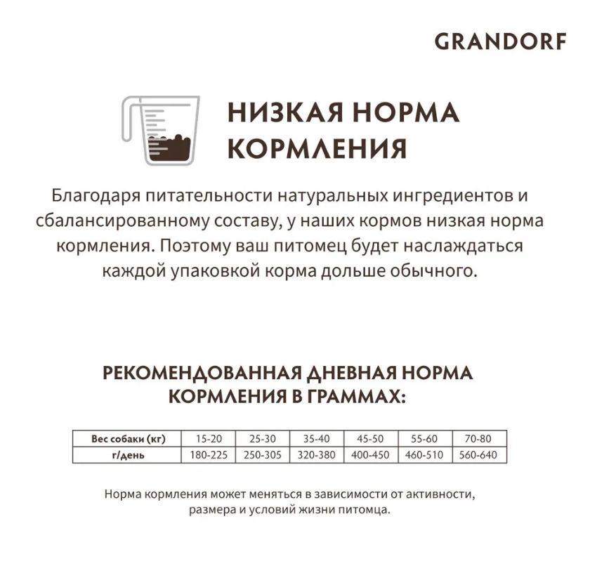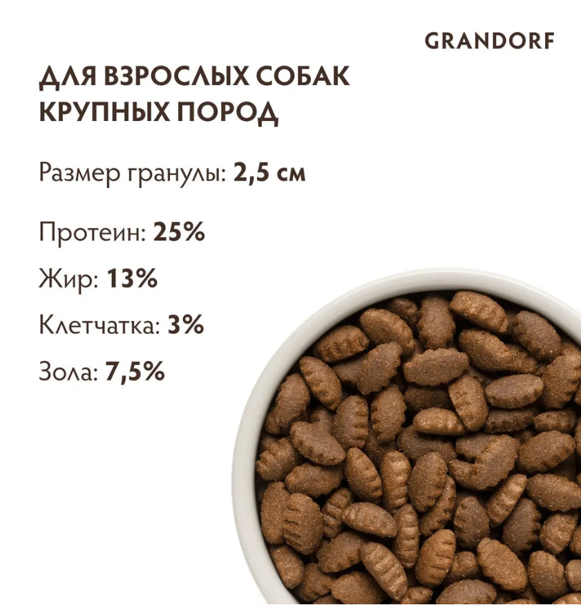 Для взрослых собак крупных пород с нормальной активностью, чувствительным пищеварением или склонностью к аллергии.