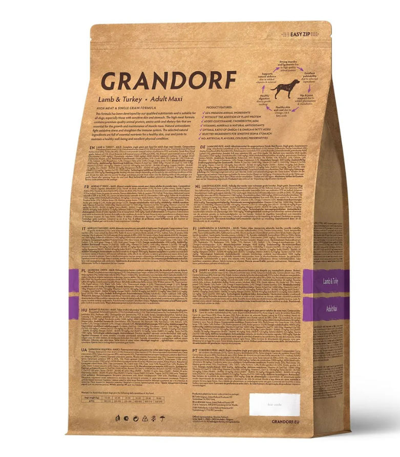 Идеально подходит питомцам крупных пород с чувствительным пищеварением или склонным к аллергии. Крупные гранулы способствуют неторопливому поеданию и усвоению продукта. Комплекс хондропротекторов поддерживает суставы и связки.