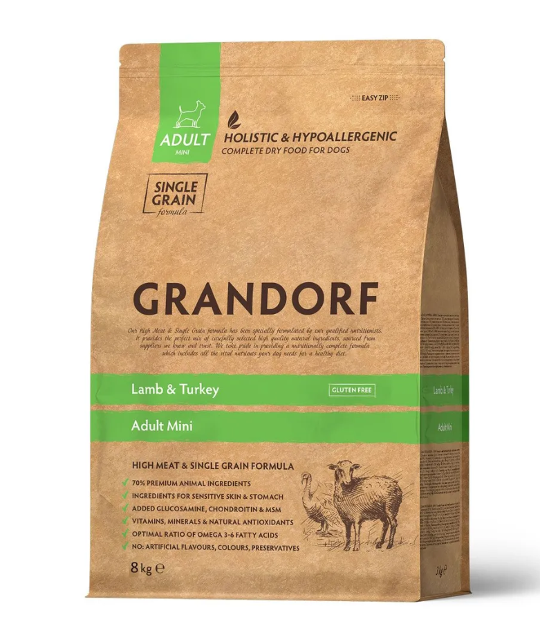 Свежее гипоаллергенное и питательное мясо ягненка и постной индейки благотворно влияют на пищеварительную систему собаки. Благодаря гипоаллергенным ингредиентам, одному виду зерновых, отсутствию глютена, корм имеет отличную усвояемость, высокую пищевую ценность и помогает оставаться вашему питомцу здоровым и жизнерадостным на протяжении долгих лет жизни.