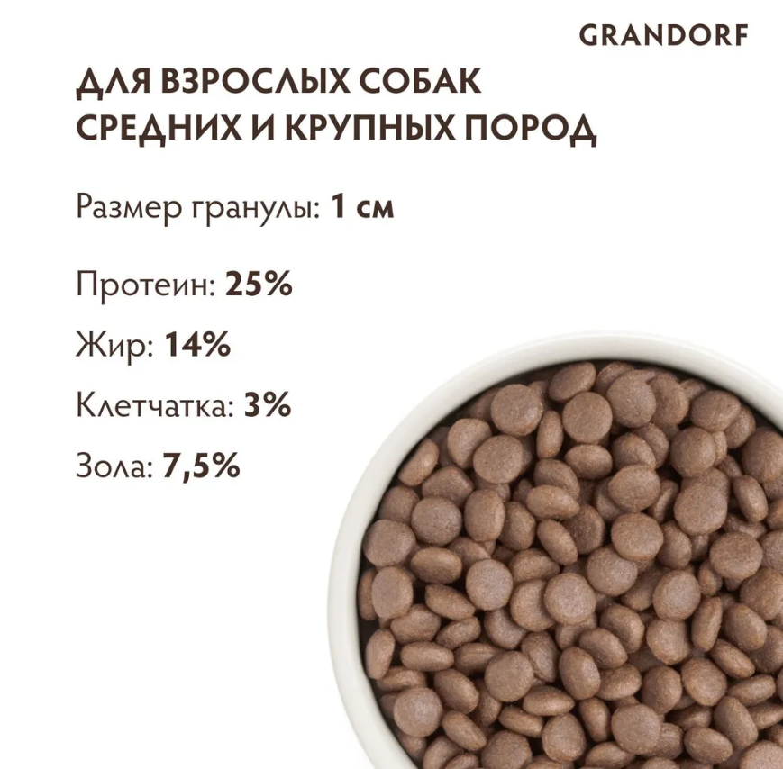 Для взрослых собак средних и крупных пород с нормальной активностью, чувствительной кожей и шерстью или склонных к аллергии.