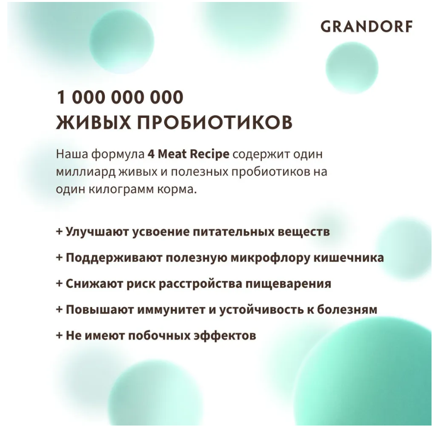 - 65% мяса в составе корма