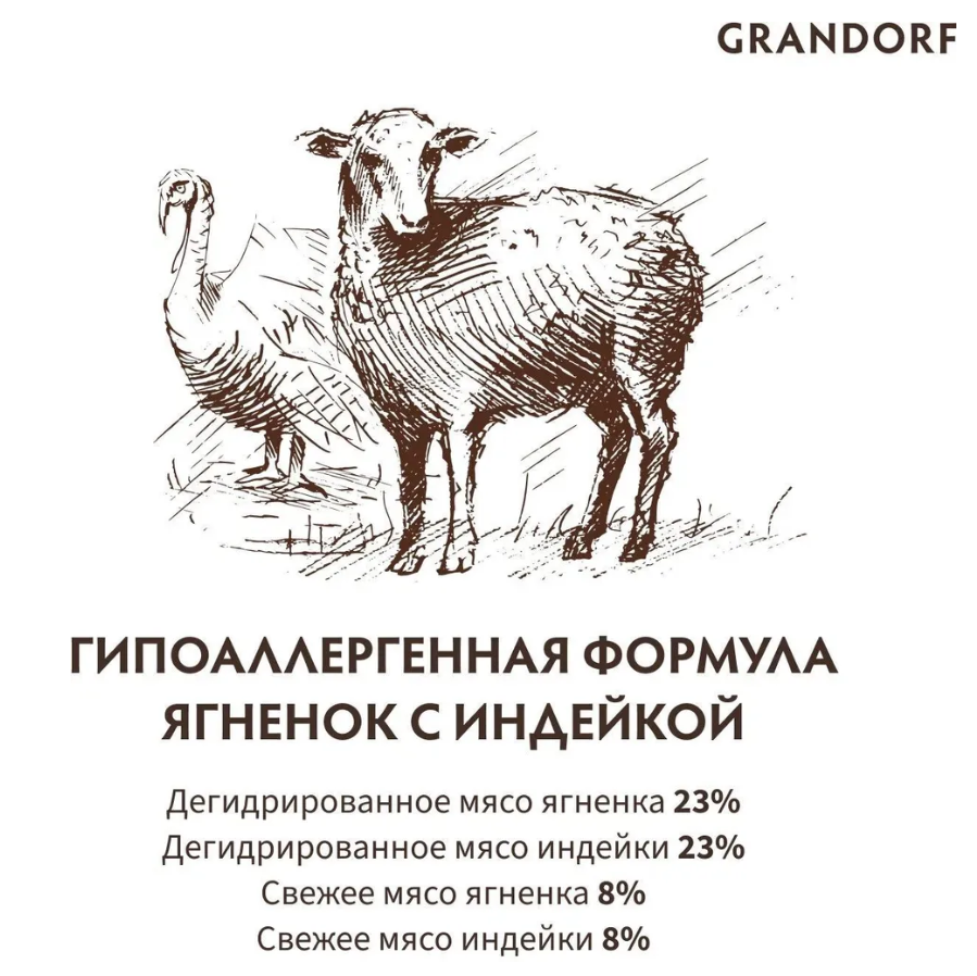 Дегидрированное мясо ягненка (23%), Дегидрированное мясо индейки (23%), Цельнозерновой коричневый рис, Свежее мясо ягненка (8%), Свежее мясо индейки (8%), Жир индейки (6%), Порошок корней цикория (натуральный источник пребиотиков: FOS и инулин), Мука из плода рожкового дерева, Сушеное яблоко, Свежее масло лосося (1%), Сушеный антарктический криль (натуральный источник ЭПК и ДГК, 1%), Пивные дрожжи (природный источник MOS и бета-глюканов), Глюкозамин (1000 мг/кг), Хондроитина сульфат (1000 мг/кг), MSM (метилсульфонилметан, 40 мг/кг), Сушеная клюква, юкка Мохаве.