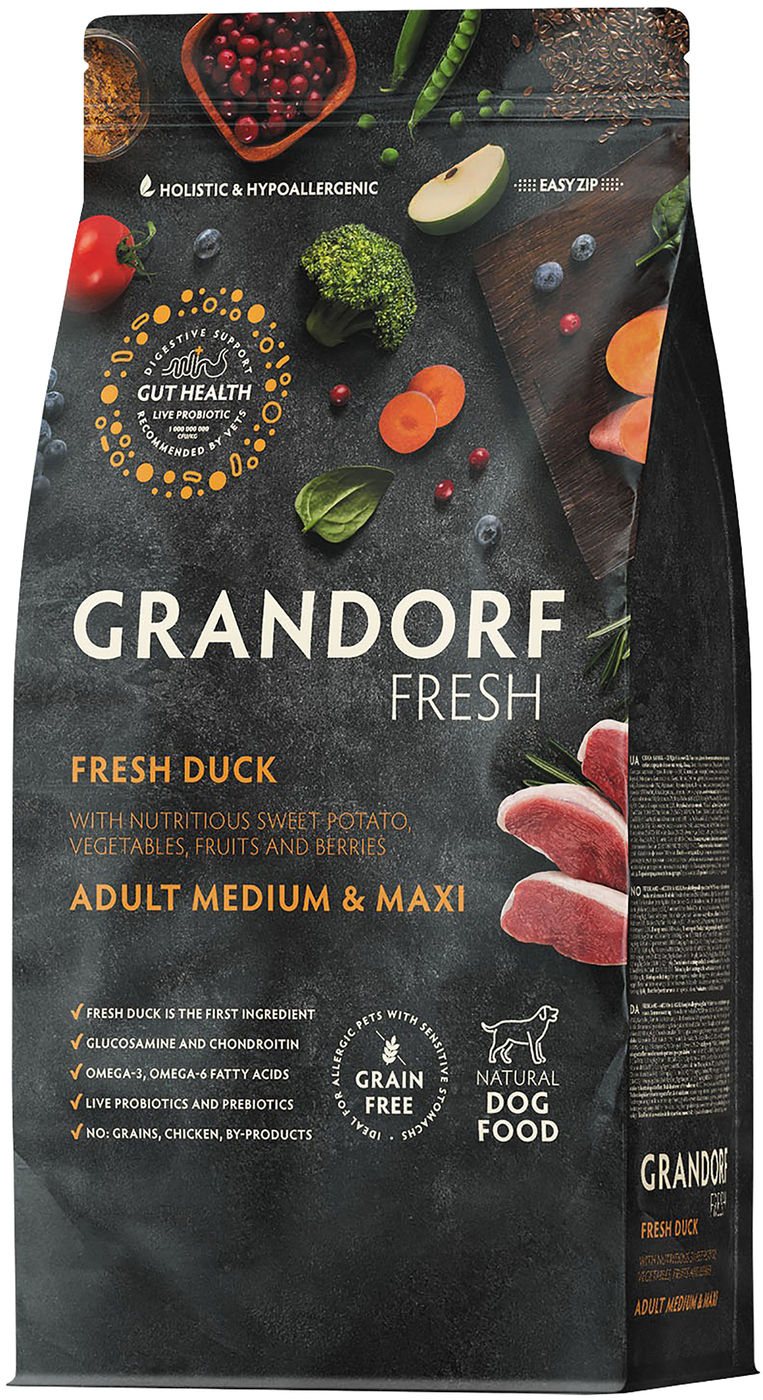 Свежее гипоаллергенное и питательное мясо утки и постной индейки благотворно влияют на здоровье собаки. Благодаря гипоаллергенным ингредиентам, беззерновому составу, живым пробиотикам, отсутствию глютена, корм имеет отличную усвояемость, высокую пищевую ценность и помогает оставаться вашему питомцу здоровым и жизнерадостным на протяжении долгих лет жизни.