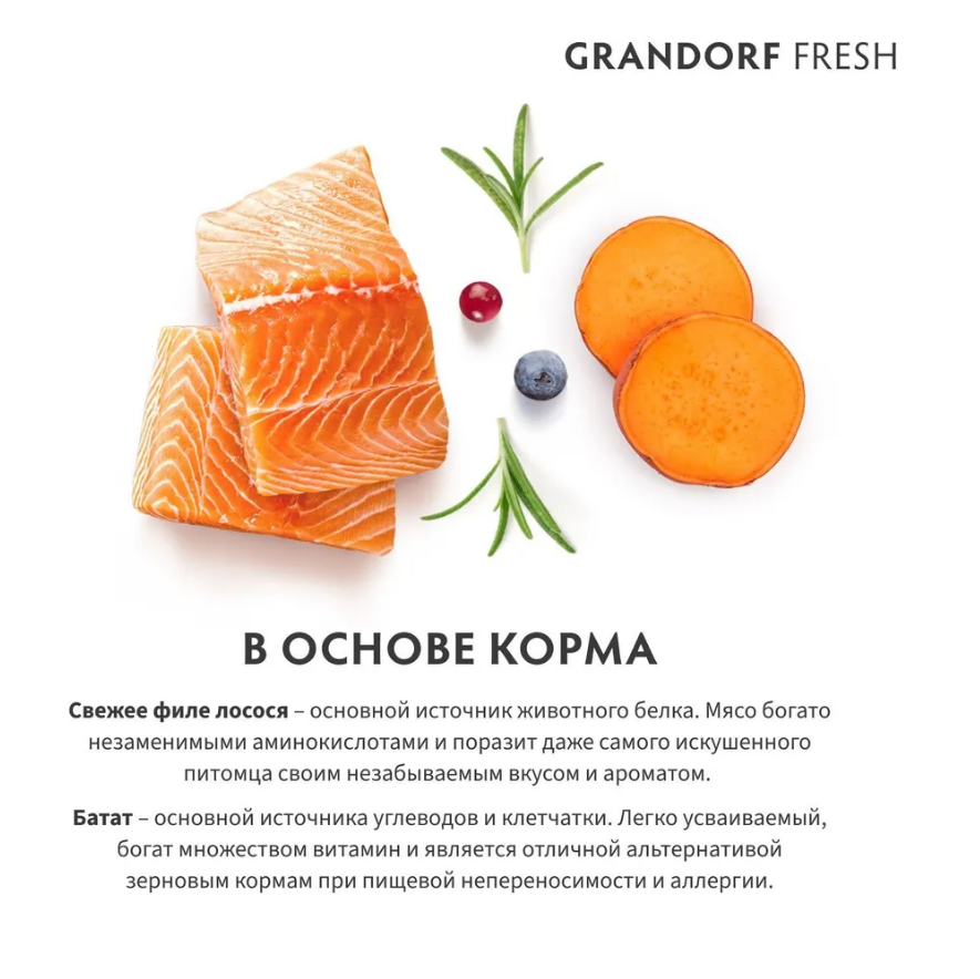 Свежее гипоаллергенное и питательное филе лосося благотворно влияет на пищеварительную систему собаки. Благодаря правильно подобранным ингредиентам, а также сбалансированному содержанию омега-3 и 6 жирных кислот корм имеет отличную усвояемость, высокую пищевую ценность и поддерживает здоровье чувствительной кожи и шерсти собаки.