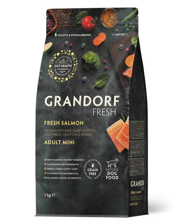 Беззерновой корм с живыми пробиотиками. Для взрослых собак мелких пород, для здоровья кожи и шерсти или склонных к аллергии.