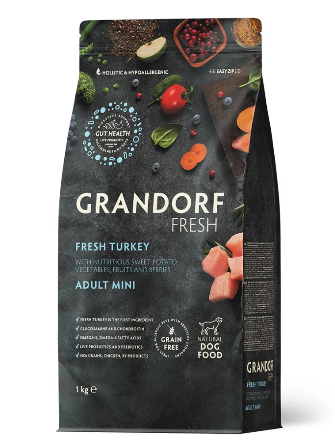 Свежее гипоаллергенное и питательное мясо индейки благотворно влияет на пищеварительную систему собаки. Благодаря монопротеиновой формуле, гипоаллергенным ингредиентам, беззерновому составу, живым пробиотикам, отсутствию глютена, корм имеет отличную усвояемость, высокую пищевую ценность и помогает оставаться вашему питомцу здоровым и жизнерадостным на протяжении долгих лет жизни.