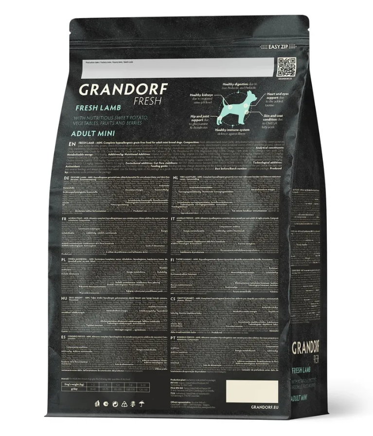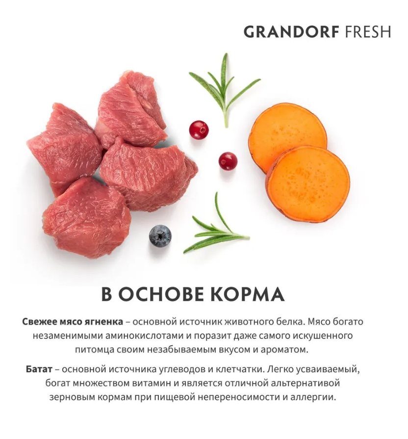 Свежее гипоаллергенное и питательное мясо ягненка благотворно влияет на здоровье собаки. Благодаря гипоаллергенным ингредиентам, беззерновому составу, живым пробиотикам, отсутствию глютена, корм имеет отличную усвояемость, высокую пищевую ценность и помогает оставаться вашему питомцу здоровым и жизнерадостным на протяжении долгих лет жизни.
