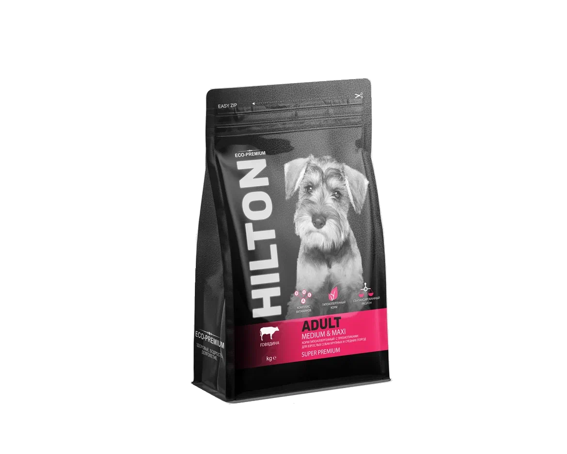 Сухой корм HILTON для собак средних и крупных пород с говядиной.